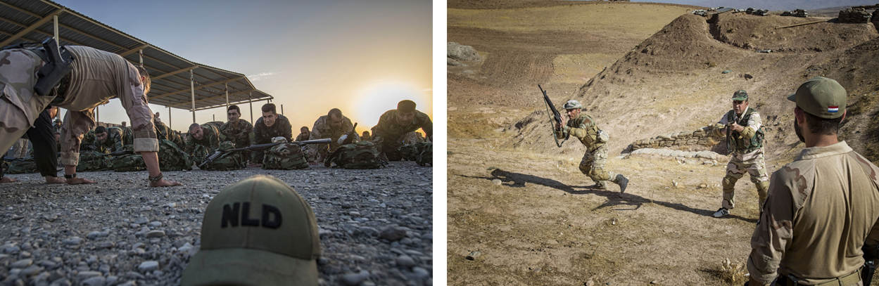 Noord-Irak. Een uur rijden verderop is de slag om Mosul gaande, ondertussen trainen landmachters de Koerdische Peshmerga. Gewapend met nieuwe kennis vertrekken de strijders naar het front.
