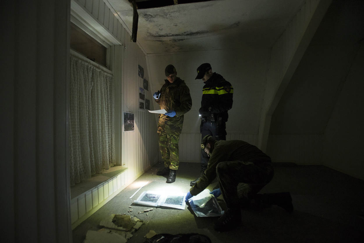 Intussen vallen agenten de woning in Almelo binnen en treffen allerlei verdachte zaken aan. Met behulp van genisten vinden ze wapens, materiaal om explosieven mee te maken, anderhalf miljoen euro en plattegronden van gevoelige locaties. Het vermoeden van terreur lijkt te kloppen en een plan van aanpak volgt om de verdachten op te sporen.