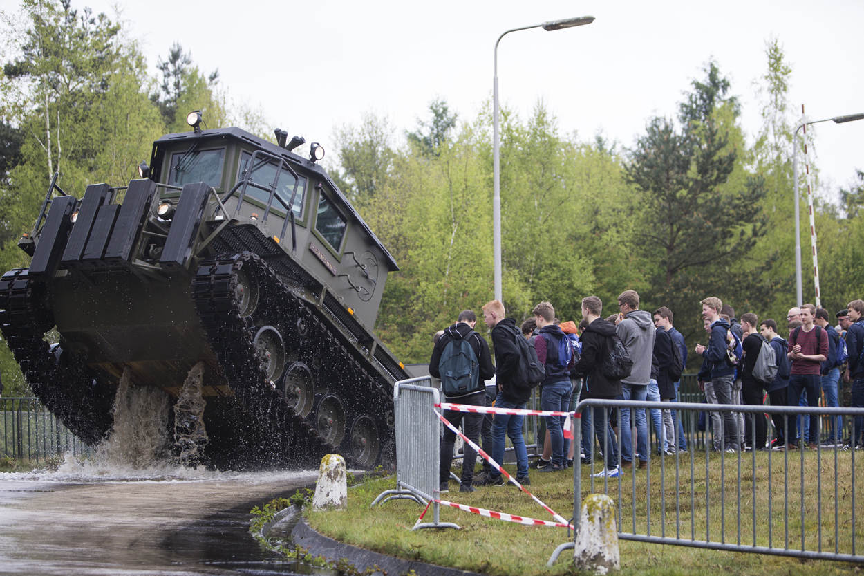 Een technisch vak uitoefenen bij een stoere werkgever als de landmacht, zonder dat je militair hoeft te worden. Dat is de boodschap die de kolonel de jeugd hoopt mee te geven. De onderhouds- en herstelwerkzaamheden aan rups- en wielvoertuigen in Leusden gebeuren namelijk allemaal door burgermedewerkers. “De VeVa (opleiding Veiligheid en Vakmanschap red.) laat zich veel zien aan jongeren, maar dan word je militair. Er zijn zat jongens en meisjes die dat te griezelig vinden, maar het leger wel interessant vinden. Ik heb burgers nodig. Van alle niveaus.”