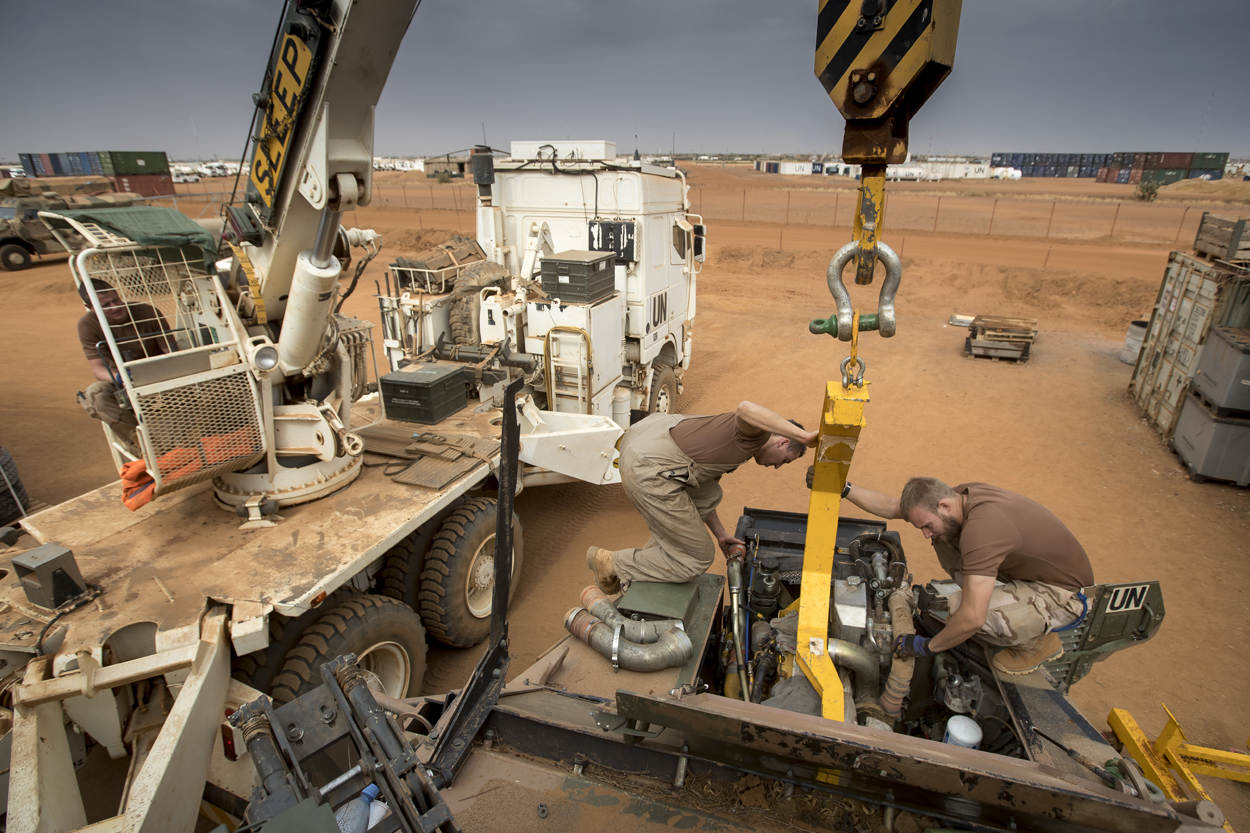 Herstelwerkzaamheden in Mali. Bij ITAR-overtredingen kan de toelevering van reservedelen vertragen, met negatieve consequenties voor de operationele gereedheid.