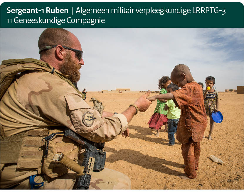 Het bevalt hier prima op Kamp Castor in Gao. Ik heb het rustig op medisch gebied en dat betekent dat het goed gaat. Gelukkig heb ik nog geen traumazorg hoeven doen. Wel komen mensen met allerlei kleine klachten naar me toe, zoals voetschimmel of een verstuikte enkel. Verder kom ik in ziekenhuizen in lokale dorpjes, waar we ook zieken zien. Maar daar mogen we niet zoveel mee, want dat valt niet binnen ons mandaat. Dat is wel eens jammer. Je treft er patiënten aan met malaria, ontstekingen en allerlei oog-, maag- en gewrichtsklachten. We helpen her en der met advies en verstrekken wel eens klamboes, jodium of paracetamol. Maar wat kun je betekenen als mensen niet eens stroom hebben? Ik ben voor de tweede keer in Mali. Het meest opvallend blijft de manier waarop mensen hier leven. De erbarmelijke staat van ziekenhuizen is soms echt te triest voor woorden, mensonterend. Ik besef regelmatig hoe goed we het hebben in Nederland.”