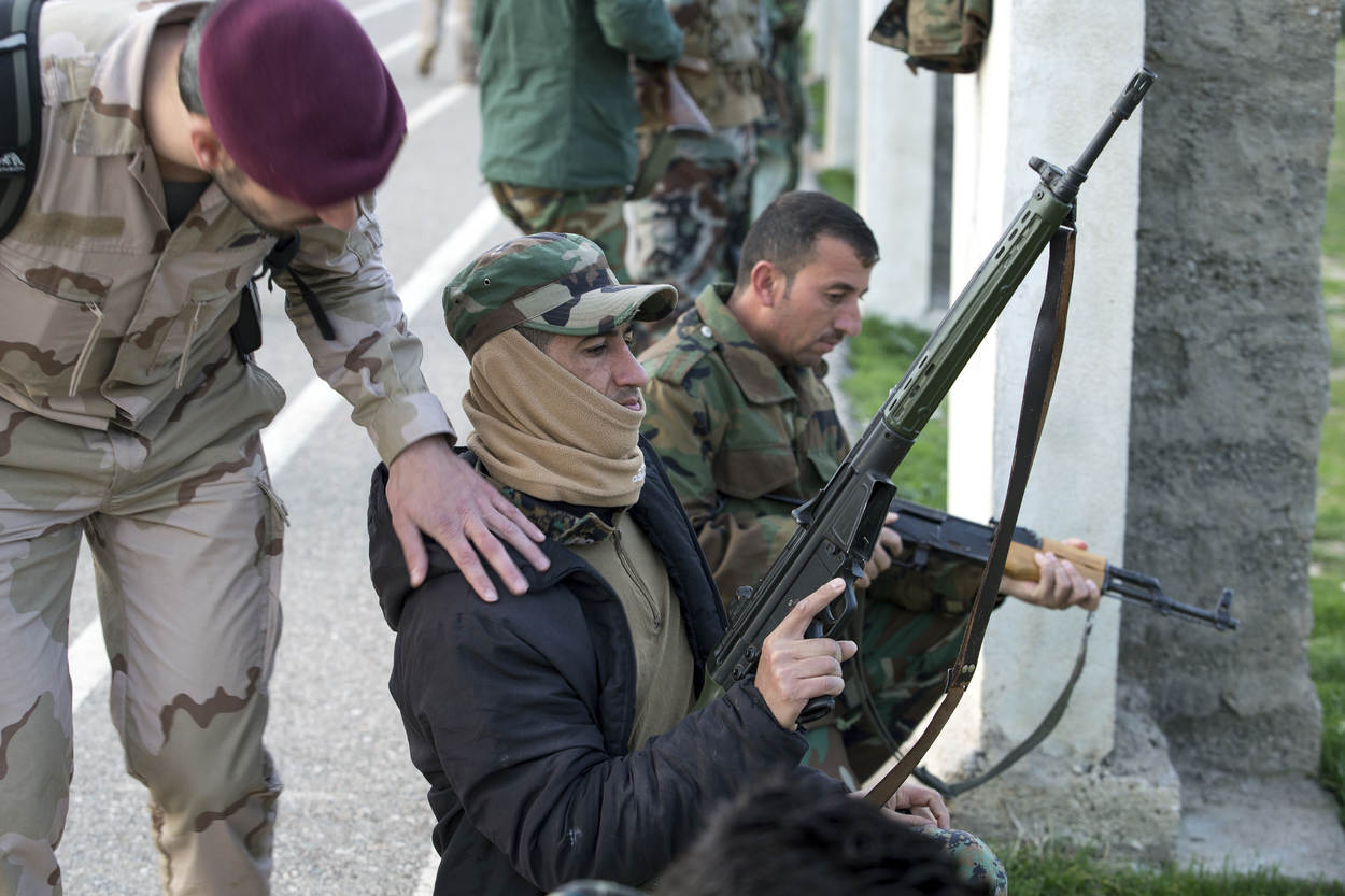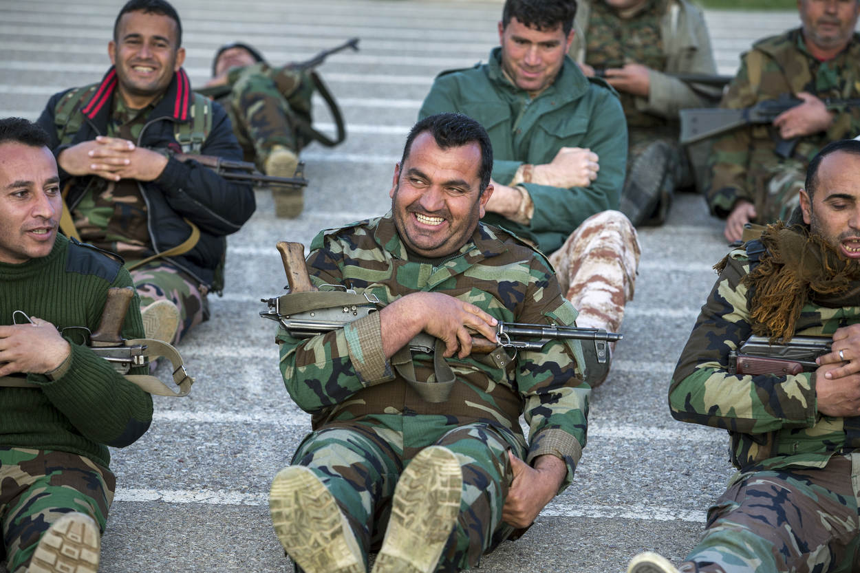 Stel, een gevangengenomen ISIS-strijder werkt niet mee. Wat dan? Diverse Peshmerga in het leslokaal steken hun hand op. Tweede luitenant Thom kijkt en kiest iemand. “Dan sla ik hem”, is het antwoord tijdens de opfrisles humanitair oorlogsrecht.