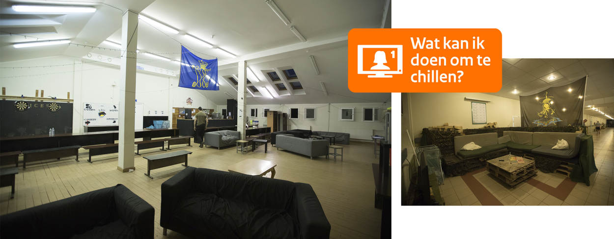 Karten, zwemmen, of naar Kaunas of Vilnius, mits dagtrips naar die steden plaatsvinden als je niet net hulzen aan het maken bent in het oefenterrein. Televisie kijken kan ook, of poolen, darten en tafeltennissen. De Nederlanders hebben op de vijfde verdieping van een van de legeringsgebouwen een relaxruimte. Daar koop je snacks en alcoholvrij bier, kun je Nederlandse tv-zenders kijken en er staat vrijwel altijd koffie te pruttelen. Veel Nederlanders hebben overigens op hun eigen verdieping chillhoeken gebouwd.
