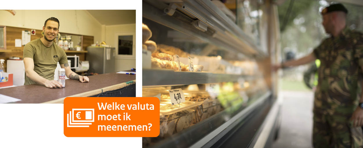 Gewoon euro’s. Je wilt natuurlijk weten of er een Amerikaanse PX is. Knak... De Amerikanen hebben de leiding over de battlegroup in Polen en zijn op Rukla dan ook nauwelijks te vinden. Waar je dan je toelage aan kunt spenderen? De lokale bakker heeft een rijdende dependance op de kazerne, de Duitsers verkopen sigaretten, horloges, luchtjes en uitstekende broodjes hamburger (aanrader!) en je kunt natuurlijk ook gewoon lokaal shoppen.