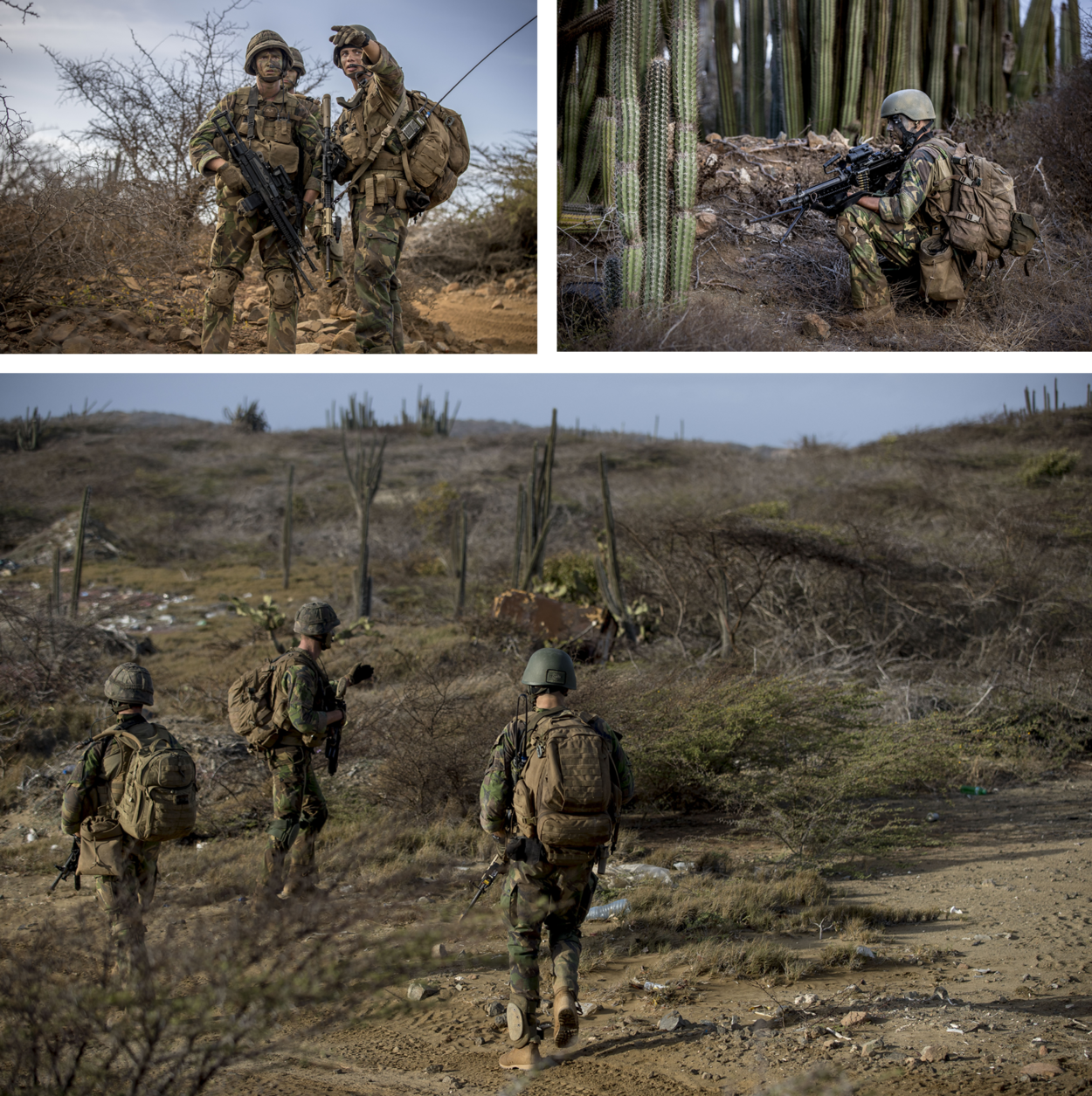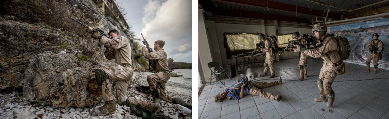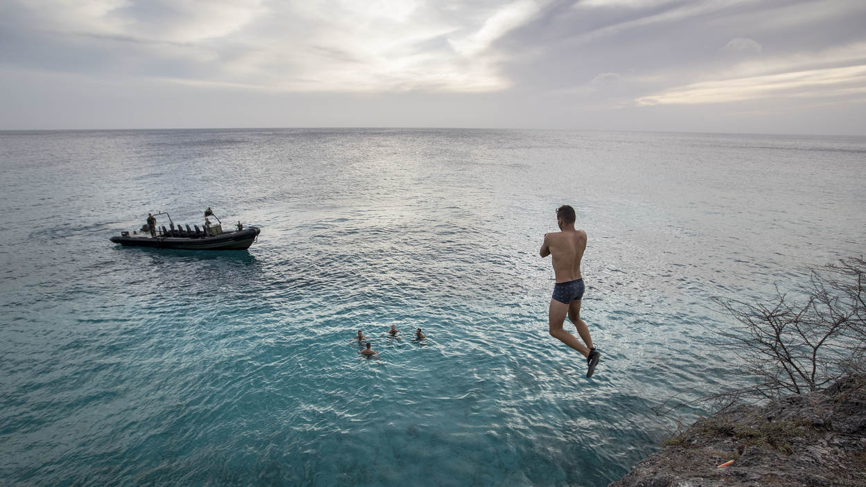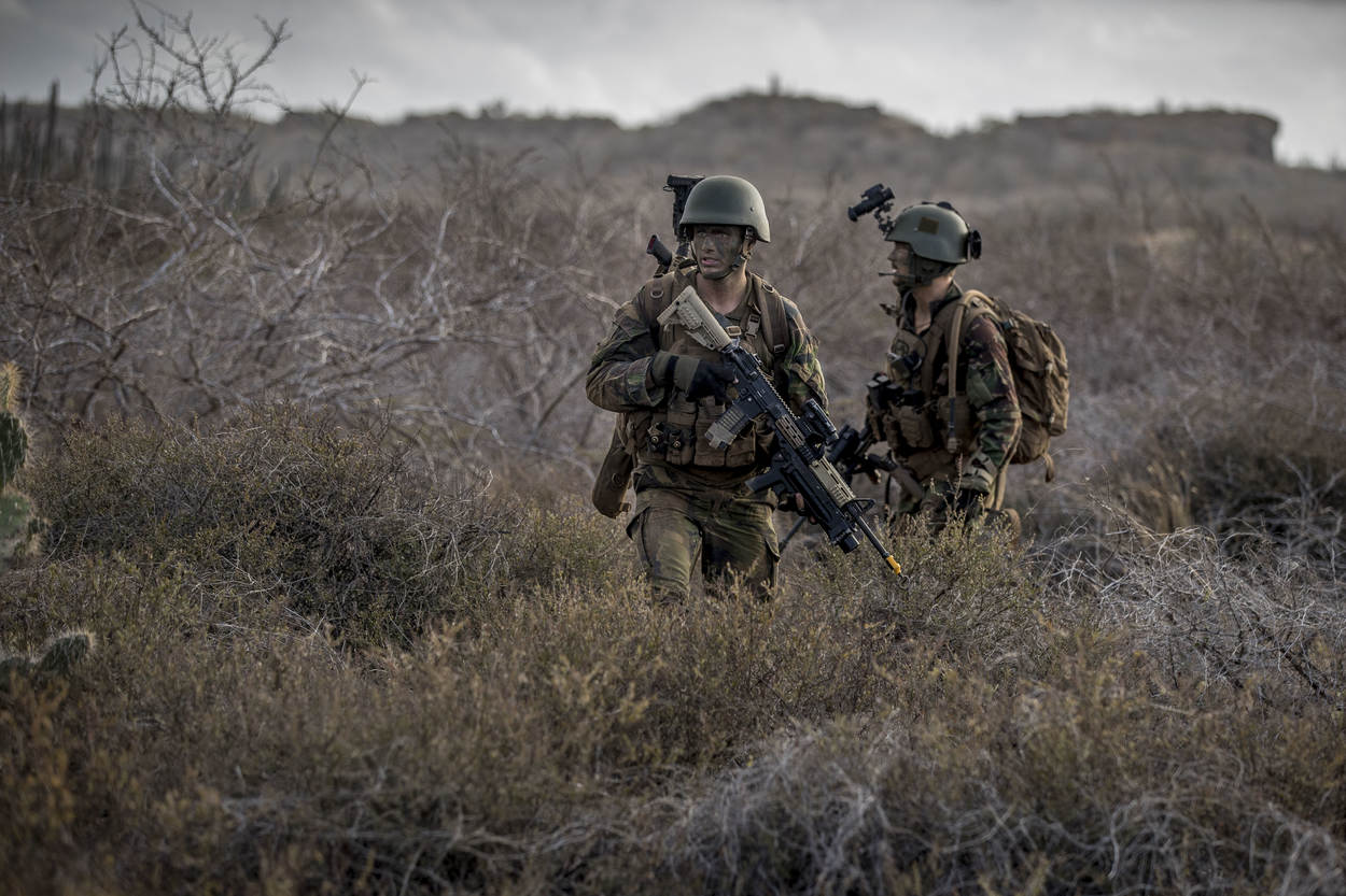 Als ook deze opdracht afgerond is, ploft de 22-jarige Minimi-schutter Harm neer. Hij heeft pas in september de AMOL afgerond en is daarna al snel naar Curaçao gestuurd. “Er komen veel nieuwe dingen op me af. We zijn net bijvoorbeeld met een FRISC aan wal gekomen. Dat is wel even anders dan een helikopter. Ik vind het allemaal te gek. Het parcours is als schutter soms zwaar, maar gelukkig helpt de groep me.”