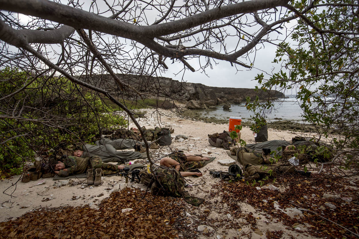 Als de mannen donderdagochtend denken dat de zware week erop zit, blijkt niets minder waar. De bus die ze terugrijdt naar marinebasis Parera, stopt niet bij de slaap- of eetzaal maar bij de pistoolbaan. Na de veiligheidsinstructies moeten de mannen nog een flink stuk speedmarsen met onderweg een paar schietoefeningen.