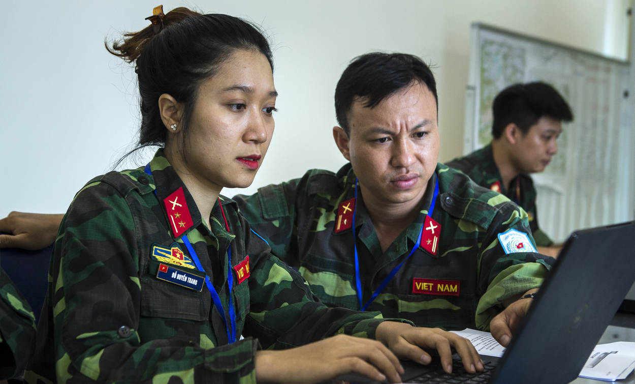 Kapitein Dong Nguyen en eerste luitenant Do Huyen Trang participeerden allebei in de cursus United Nations Military Expert on Mission (zie vorige pagina, red.). Eerstgenoemde trad op als instructeur van het Vietnam Department of Peacekeeping Operations, Huyen Trang zat daadwerkelijk als cursist in de klas. Hoe beleefden deze Vietnamese officieren de bijzondere training?