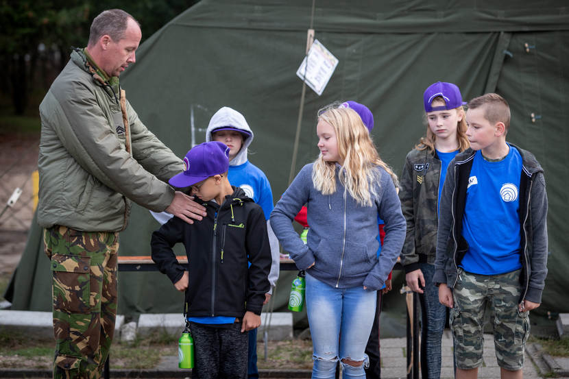 Het bivak was niet alleen een bedankje voor de kinderen, maar gaf ook een kijkje in het leven van hun militaire ouder. Op het programma stonden onder andere militaire zelfverdediging, exercitie, ZHKH en schieten in de klein kaliber simulator. “Van militairen op uitzending wordt veel gevraagd, van hun thuisfront ook”, vindt adjudant John Hamstra van het Evenementenbureau CLSK. Samen met de Defensie Organisatie Thuisfront organiseerde hij dit jaar het jeugdbivak voor ‘defensiekinderen’ tussen 8 en 15 jaar oud.
