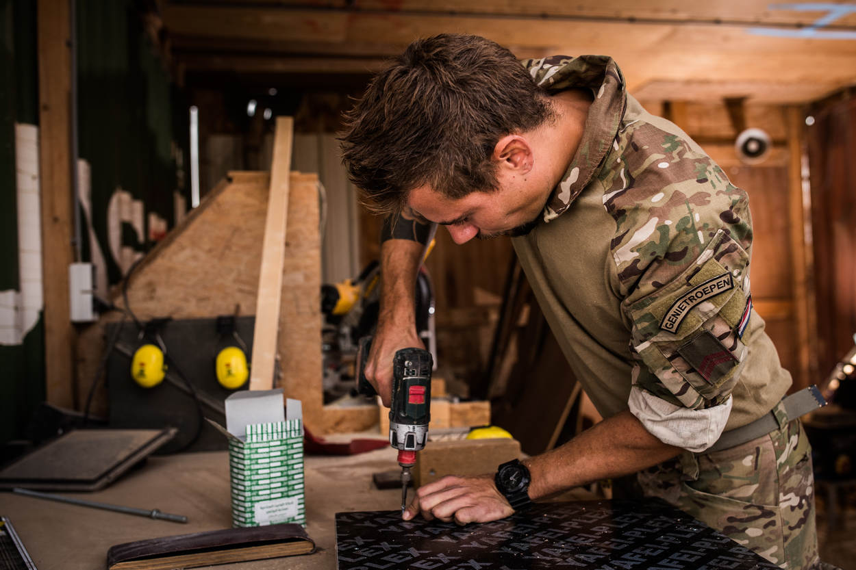 Het aanstaande vertrek van de Nederlanders maakt het werkrooster bepaald niet minder vol. Jesse: “We bereiden het kamp voor op de komst van het redeployment-team. Zo hebben we een weg aangelegd zodat ze de transportcontainers gemakkelijk kunnen transporteren.” Verder ligt er een scala aan instandhoudingsklussen op het duo te wachten, zoals het verbeteren van het prikkeldraad rondom de basis. Ralph: “Dat klinkt misschien gek; op het laatste moment nog geld uitgeven. Maar de veiligheid gaat voor alles.”