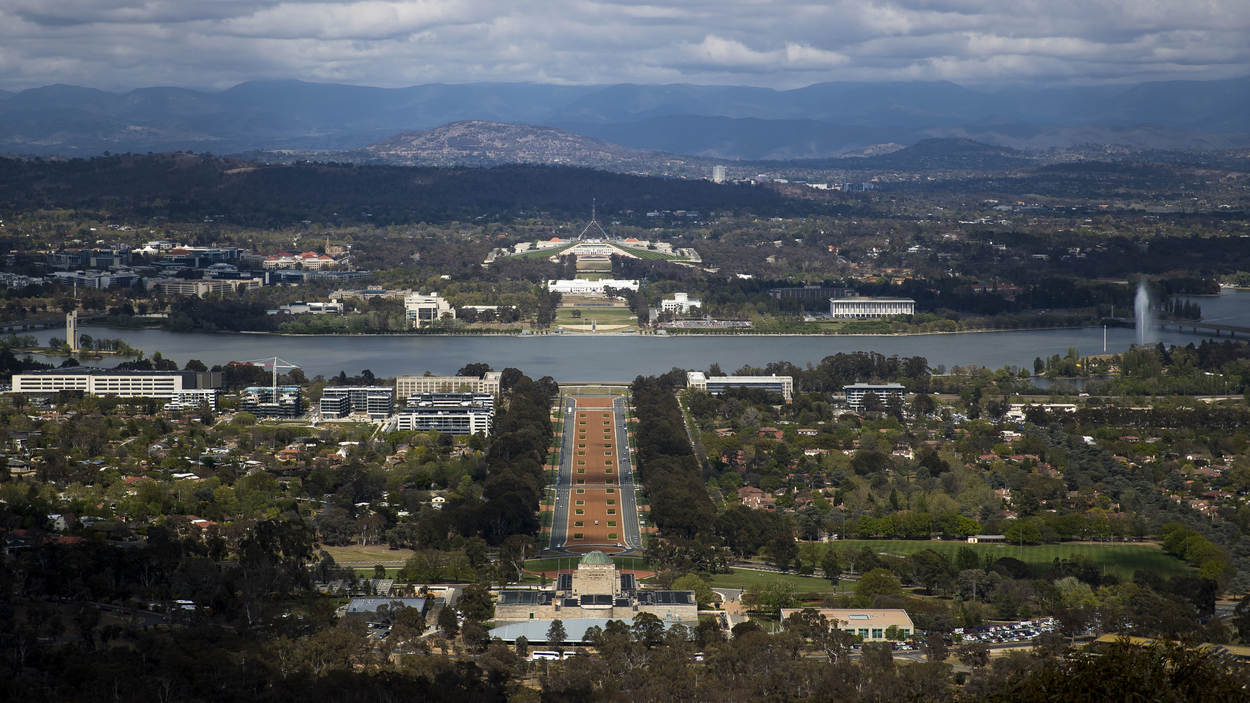 Foto: Bovenaanzicht van het Australian War Memorial in Canberra.