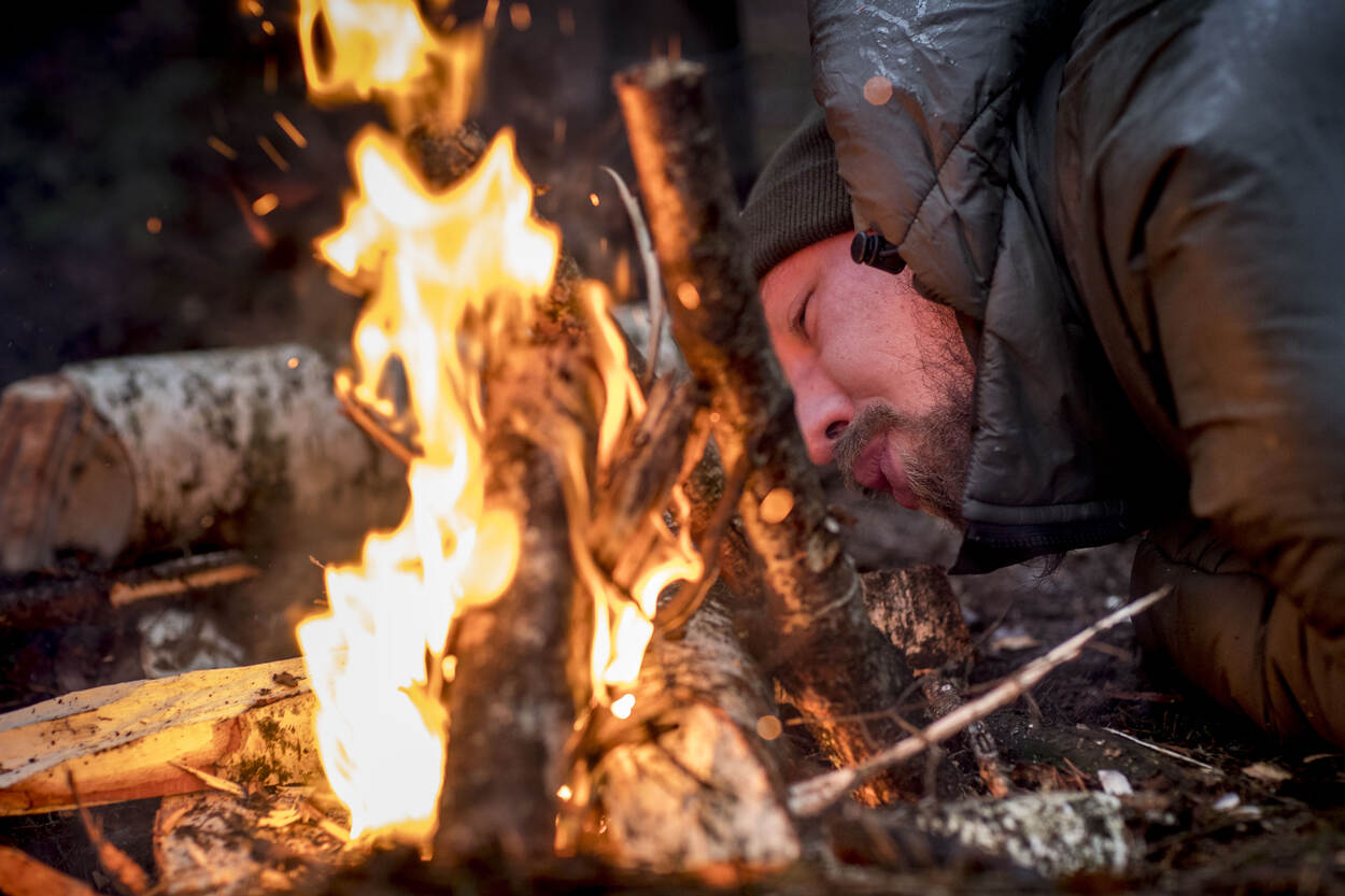 Na een nacht buiten slapen, heb je misschien meer zin om je als een balletje op te rollen bij het vuur. Maar je moet juist bewegen om de doorbloeding op gang te brengen. Sprint een stuk en zorg voor een hartslag boven de 150. Eet wat en drink een liter warme drank. Dat zorgt voor een kickstart.