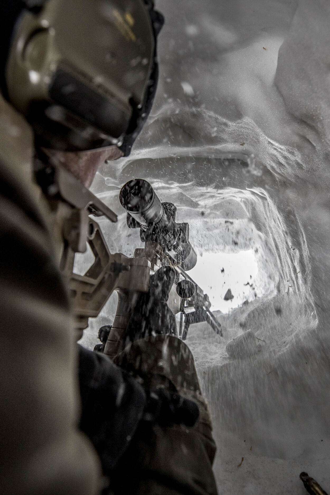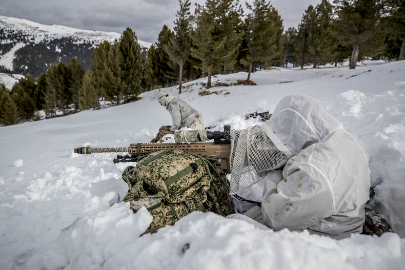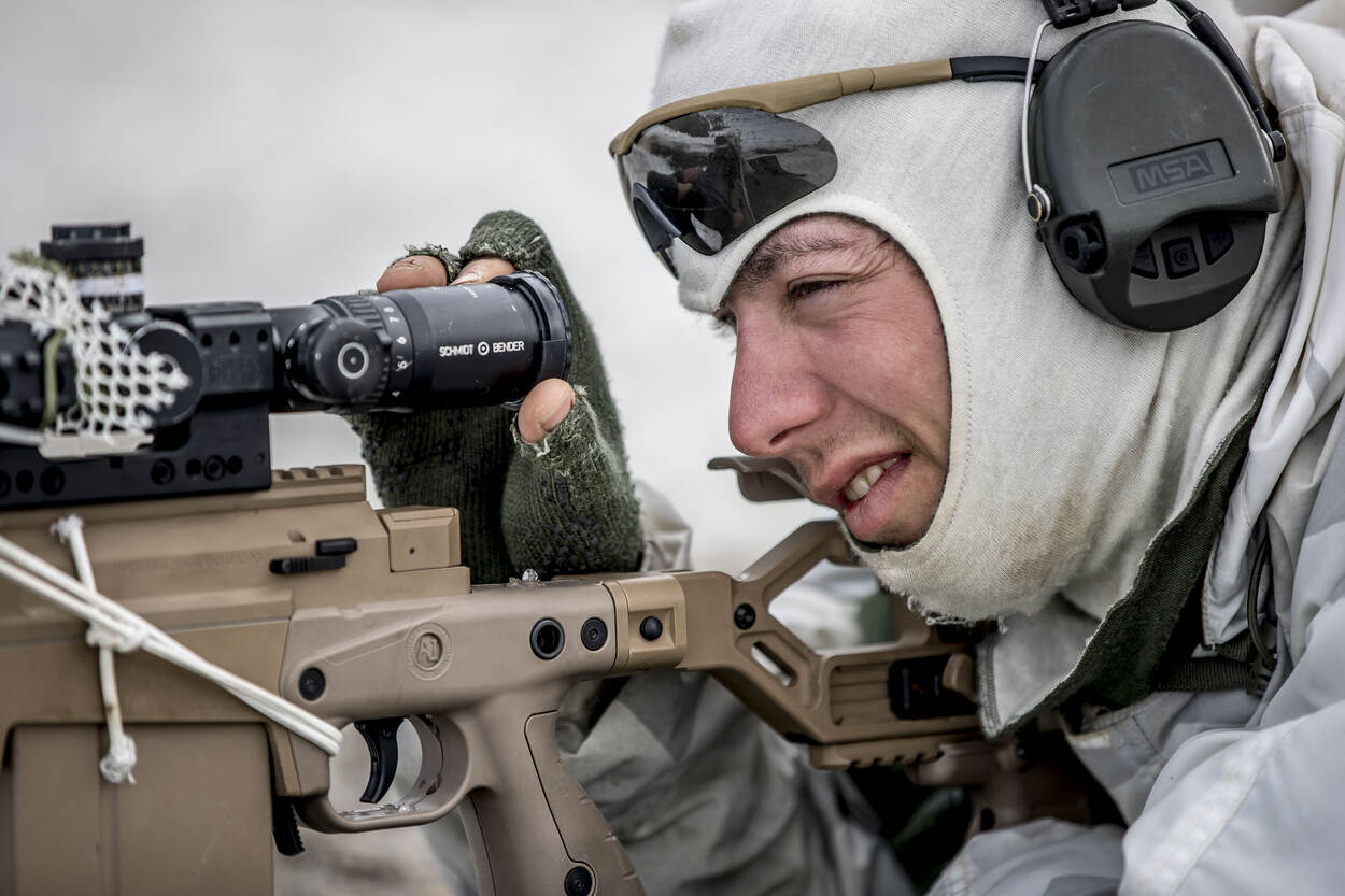 Als geen ander weet Martin waar het bij de Königsdisziplin om draait: in de vaak vijandig koude boomgrens ongezien de tegenstander waarnemen of desgewenst een precisieschot afgeven. Zo’n opdracht vertrouw je alleen de allerbesten toe. Martin, ranggenoot Sven en ‘jonkie’ Hauptfeldwebel (sergeant-1) Pam behoren tot die categorie. Je ziet het aan hun manier van doen. Uiteraard aan de Edelweiss (embleem voor bergspecialisten, red.) op hun gevechtspak en aan het gemak waarmee ze op grote afstand met kaliber 7.62 X 67 groepjes schieten.
