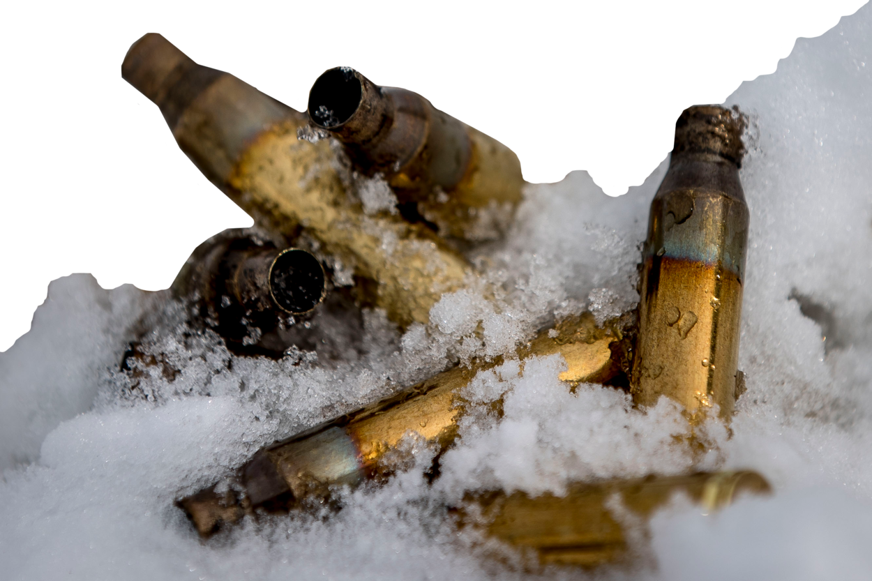 Creatief plaatje van verschoten .338 Lapua Magnum hulzen.