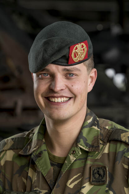 “Ik was vroeger al een ‘priegelaar’. Een beetje aan fietsen en trekkers sleutelen, mooi man. Pantserinfanterie was dan ook geen gekke keuze voor mij. Eerlijk: dit moet wel je ding zijn hoor. De bereden eenheid is echt een vak apart. Je werkt samen, maar bent tegelijkertijd heel zelfstandig. Zeker als schutter.