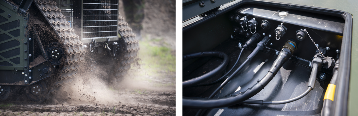 Op het oefenterrein in Oirschot laat sergeant-1 Jordan zijn rijkunsten zien. Hij is opgeleid op de THeMIS, een onbemand rupsvoertuig van de Estse startup Milrem waarvan er nu 2 in bezit zijn. “In Schotland kijken we hoe we hem goed kunnen inzetten. Bij de bevoorrading kan hij een grote rol spelen, zodat een eenheid minder hoeft te verplaatsen. Waarom zouden wij naar een bevostraat gaan als die naar ons toe kan komen?”