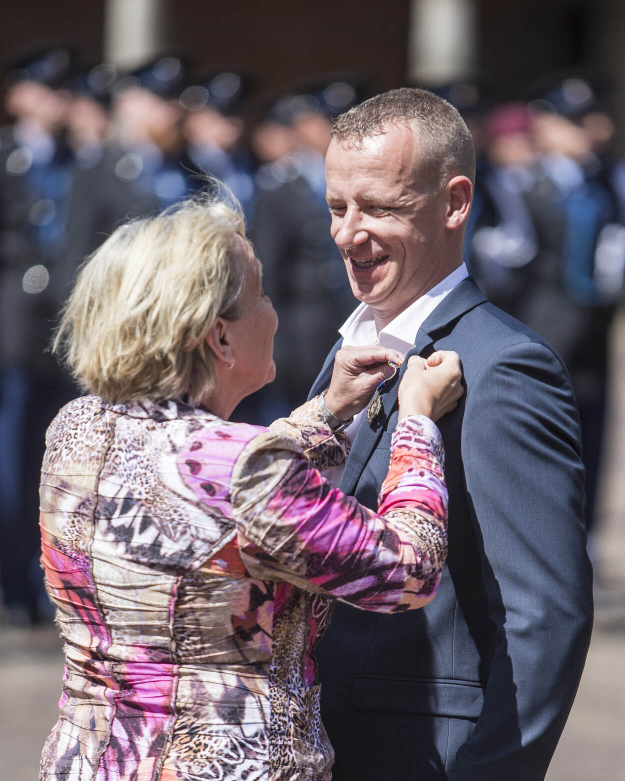 Oud-marinier-1 Thomas krijgt het Kruis van Verdienste vanwege zijn optreden in Mali in 2015. Als lid van de Special Operations Land Task Group (SOLTG) gedraagt hij zich in de woestijn moedig en beleidvol gedurende een zelfmoordaanval met een auto, geladen met 100 kilo springstof. Hij en zijn collega’s vormen daarbij het doelwit. Bijleveld: “Thomas zorgde ervoor dat de levens van zijn collega’s en hemzelf gespaard bleven.”