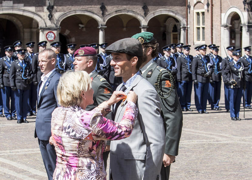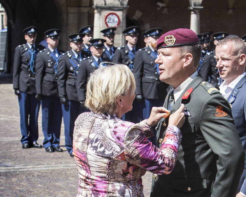 “De daden van deze mannen waren tekenend voor de afloop van enkele uitzonderlijke momenten in de geschiedenis van onze krijgsmacht.” Dat zegt minister Ank Bijleveld over de 3 militairen van de landmacht die op het Haagse Binnenhof een dapperheidsonderscheiding hebben gekregen, het Bronzen Kruis. Een van hen heeft de dienst intussen verlaten. Tijdens dezelfde ceremonie ontvangt een intussen oud-marinier 1 het Kruis van Verdienste. Wie zijn de landmachters? Waarvoor krijgen zij hun onderscheiding?