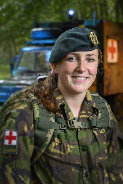 “Het ene moment let ik op de weg, het andere moment verzorg ik een gewonde militair. Het is de kunst snel te schakelen tussen mijn functie als chauffeur en geneeskundiger verzorger. Dat maakt het ook zo leuk. Ik houd van afwisseling en die heb ik zeker.