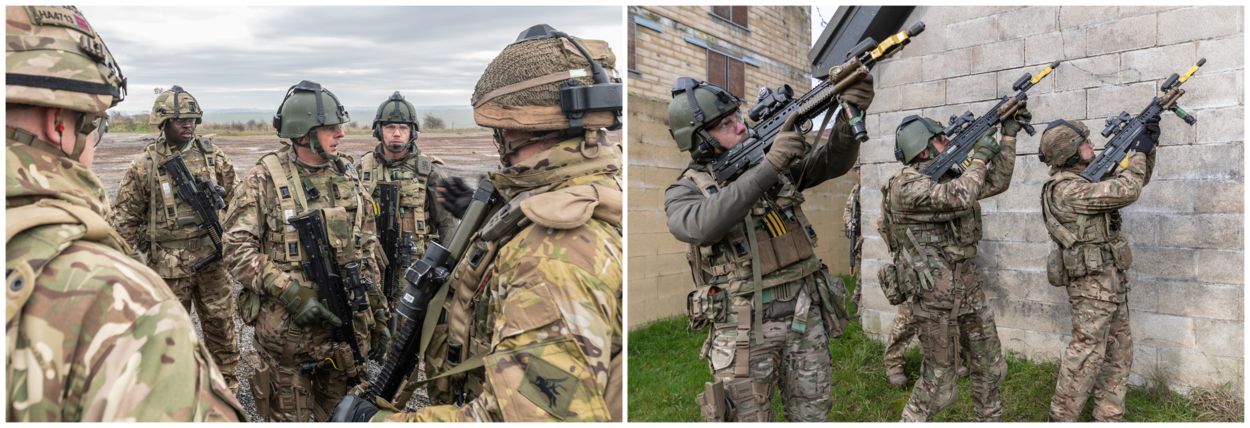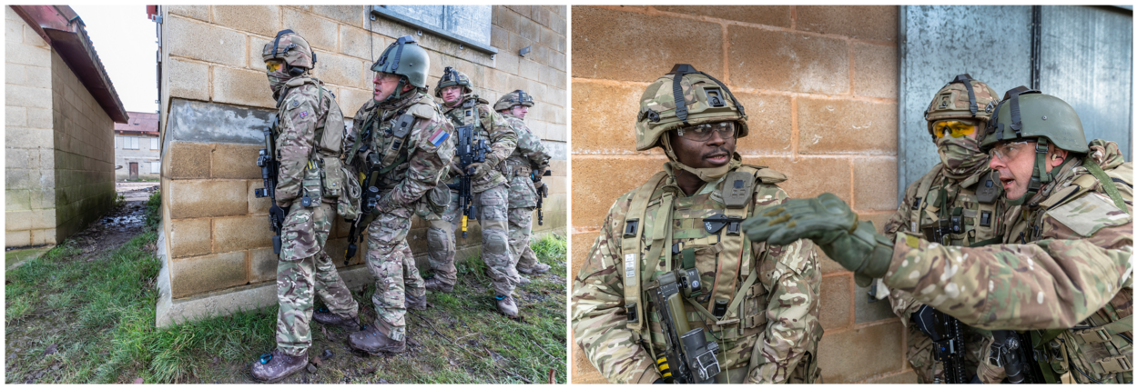 ‘Move, move, move’, motiveert de instructeur hen. Maar de oefenvijand – doorgewinterde oudgedienden uit het Britse leger – deinst niet terug en dwingt hen met kogels om achter een muurtje halt te houden. Na een kort vuurgevecht beuken ze alsnog de deur in en zuiveren de kamers.