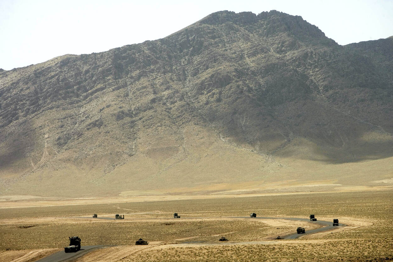 Een van de vele konvooien, dwars door Afghanistan van Tarin Kowt naar Kandahar.