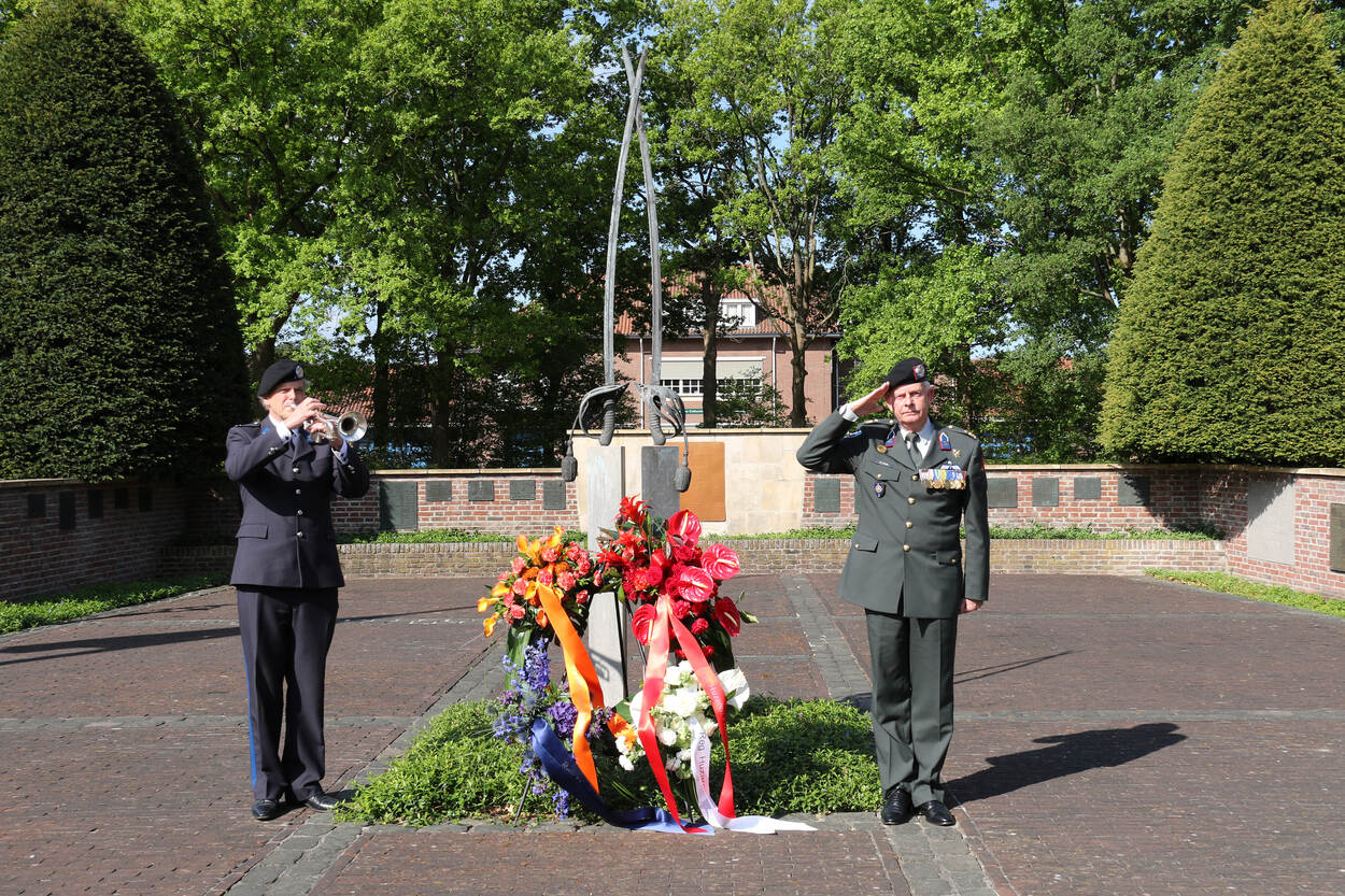 Voor de korpsadjudant van het Defensie Grondgebonden Luchtverdedigingscommando (DGLC) Jakob Tonnis was het een hele vreemde 4 mei. Al 15 jaar reist hij af naar het Park Leeuwenbergh in Leidschendam om namens de krijgsmacht een krans te leggen bij het monument van de 13e Batterij Luchtdoelartillerie. Hier vond een van de eerste bombardementen van de Tweede Wereldoorlog op Nederlands grondgebied plaats. Daarnaast waren er felle gevechten tussen Nederlandse luchtdoelartilleristen en Duitse parachutisten. Dit jaar zou de 80e herdenking zijn. “In juni 1940 was er al een ceremonie, een maand na de oorlogsdagen in mei,” weet Tonnis. “Dit jaar zou een militaire herdenking zijn, met vaandel en een grote afvaardiging. Dat kan niet doorgaan. Het is met name sneu voor de nabestaanden van de overledenen. Nu leggen wij een krans, houden een minuut stilte en vertrekken weer.” De tweede kranslegging voor Tonnis was in Westerbeek, dichtbij de thuisbasis van het DGLC. Het is de laatste keer dat Tonnis dit in uniform doet. Volgend jaar zwaait hij af.