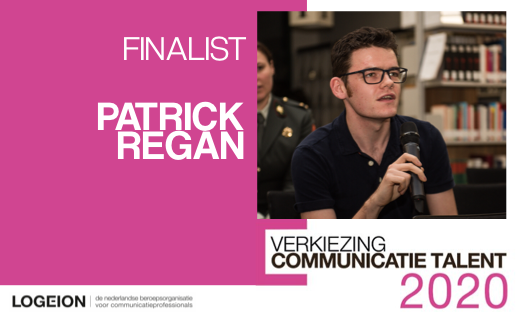 Patrick Regan, communicatieadviseur bij de landmacht, is een van de 3 talenten die in de race zijn voor de titel CommunicatieTalent 2020. De prijs is een erkenning van een bijzondere prestatie binnen het vakgebied Communicatie voor een professional niet ouder dan 30 jaar.