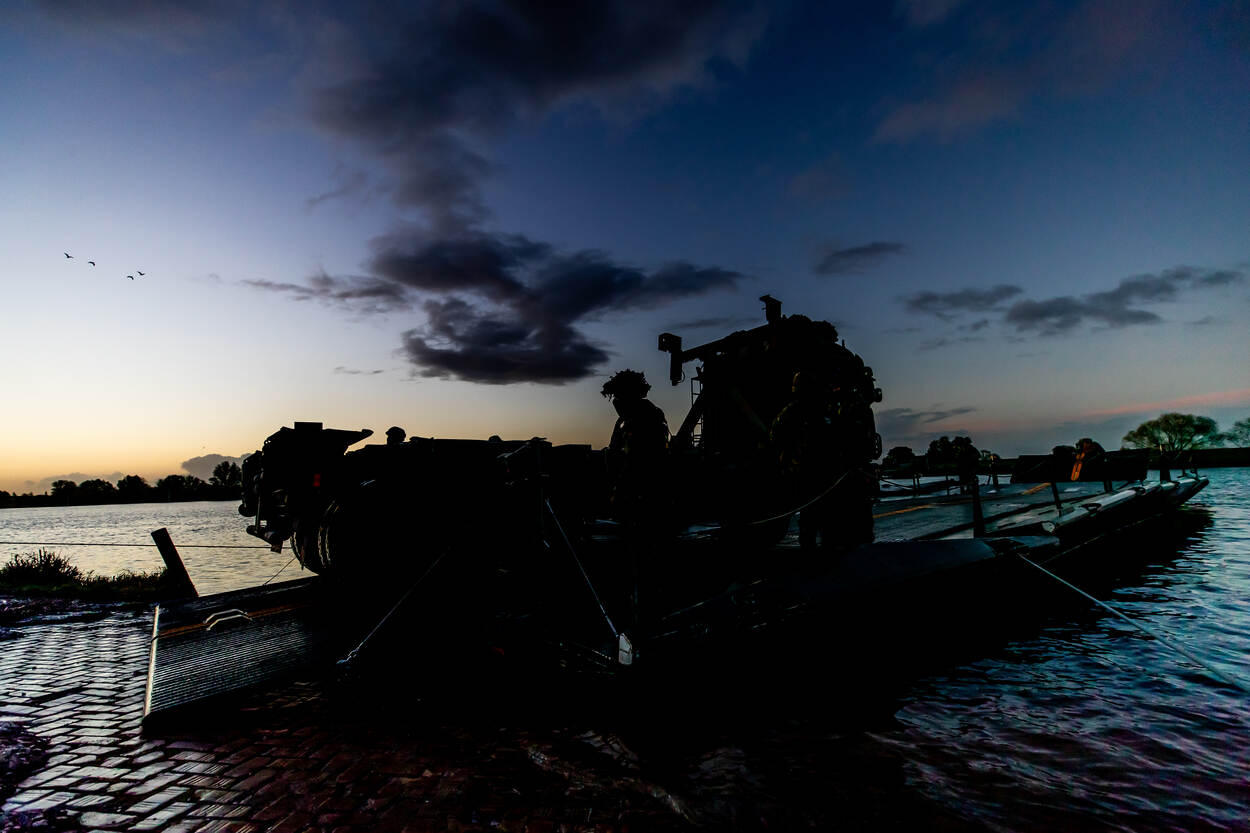 Tijdens oefening Zebra Sword halen landmachters alles uit de kast om materieel zo snel mogelijk naar de overkant te krijgen.