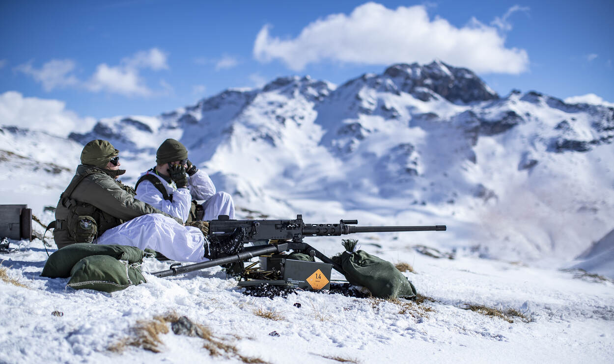 Eenheden van 13 Lichte Brigade beoefenen in Oostenrijk het schieten met de Browning M2. Het zware machinegeweer verschiet munitie van 12.7mm, oftewel .50 inch. Iedere landmachter kent deze Browning dus ook als de .50.