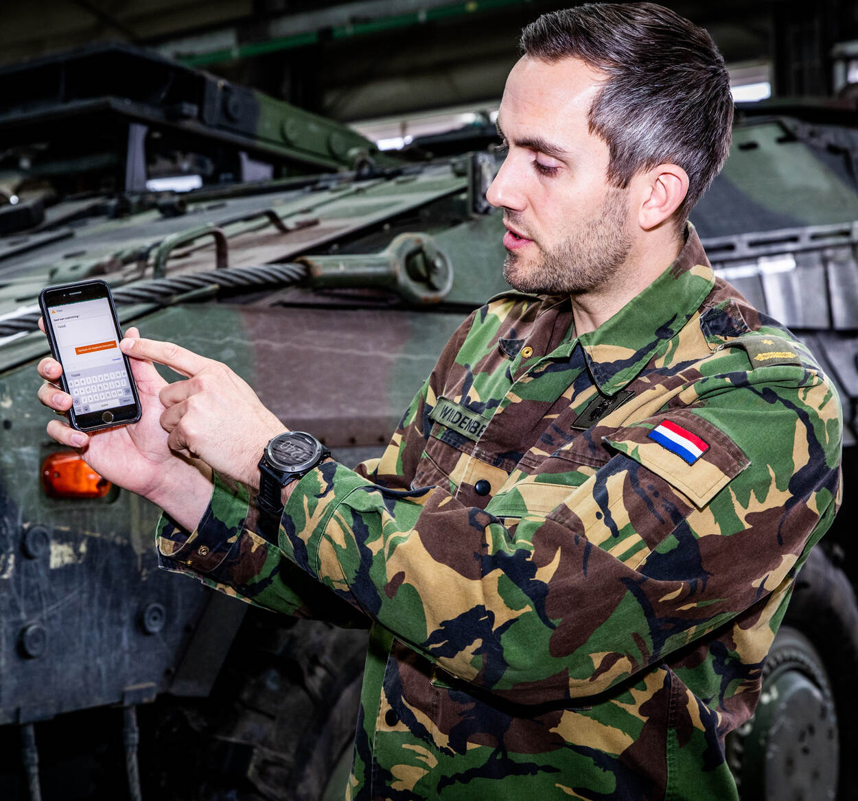 Ryan van Hooydonk is een ontwikkelaar van het JIVC-team dat de app bouwt. “Hoe vertaal ik wat ze nodig hebben naar een ontwerp? Ik ben vooral bezig met de schermontwerpen, gebaseerd op smartphones in de veilige Defensie MDM-omgeving. Bij deze app passen we de oplossing aan aan de gebruiker. Juist díe vertaling wordt vaak overgeslagen en wordt een oplossing over de schutting gegooid. Wij gaan zitten met de gebruiker en vragen hoe het beter kan. Een continu verbeterproces.”