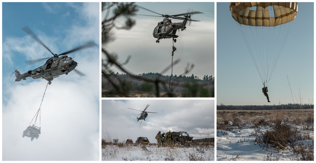 Vorstdagen op Nederlandse bodem worden steeds zeldzamer. In Schaarsbergen, maar ook bij de collega’s van de luchtmacht, werd verheugd gereageerd toen duidelijk werd dat heel Nederland een paar dagen Arctische omstandigheden zou krijgen. De rode baretten trainden onder meer fastropen, parachutespringen en het bevestigen van verschillende ladingen onder helikopters van de KLu.