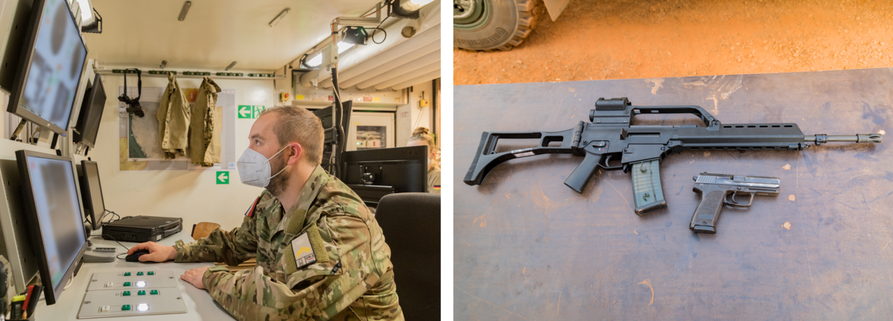 Al zaten Robin en Bram in hetzelfde opwerktraject en reisden ze samen naar Mali, ze werken in andere shifts. Robin is dan dus ook de enige Nederlander in een verder compleet Duitse Mannschaft. En dat was aan het begin zeker even wennen: “De gewoontes, procedures en omgangsnormen bij de collega’s van de Bundeswehr zijn anders dan bij ons. Wat dat betreft bemerk ik hier een wezenlijk verschil tussen onze krijgsmachten. Niet dat het storend is trouwens, maar het valt wel op. Formeel gedoe, zeg maar. Gelukkig wordt het ons als Nederlanders snel vergeven dat we niet alle ins & outs kennen en is sowieso de sfeer binnen ons peloton heel erg goed.”