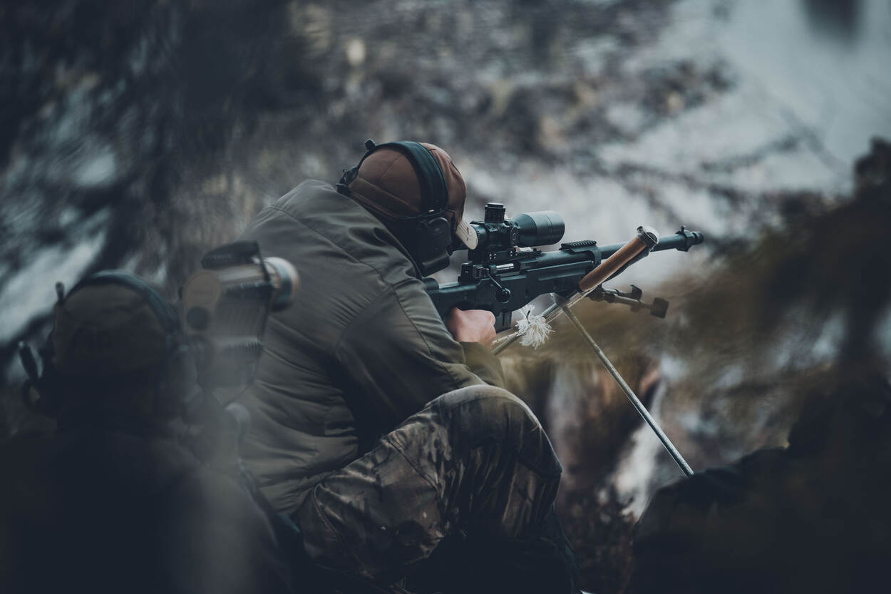 De spotter kijkt mee en helpt de schutter met het perfecte schot.