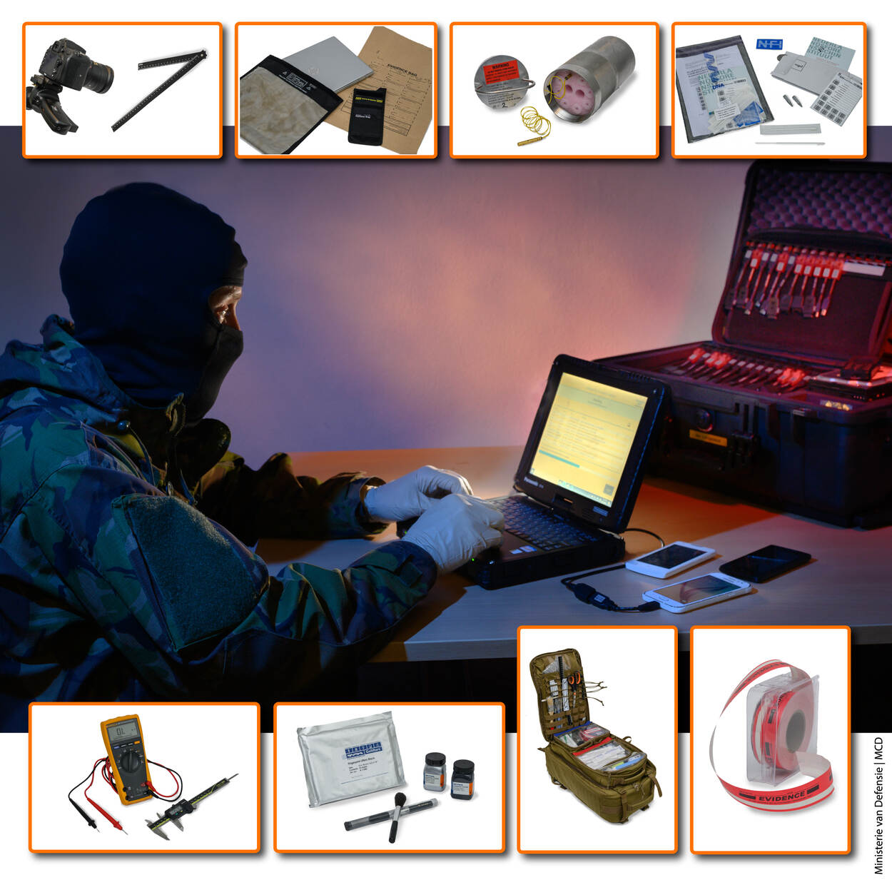 De voornaamste middelen waarmee de forensic operator strijdt, kennen de meeste collega’s waarschijnlijk vooral van series als Crime Scene Investigation. Ook al draagt hij een Glock en een Colt C8, zijn hoofdwapensysteem is een… fototoestel. En al bestaat zijn combat service support onder meer uit poeder en papier, de operationeel commandant haalt een belangrijk deel van z’n situational understanding uit de intell van 108 TEXINT-cie.