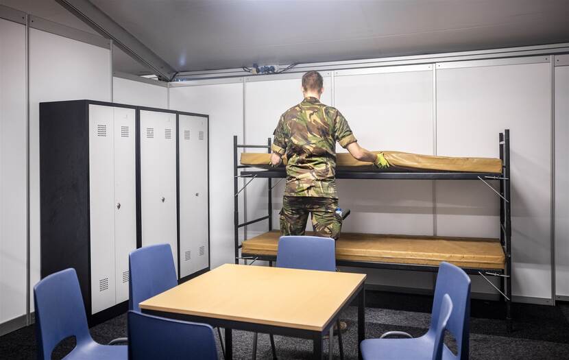 “Het was geen gemakkelijke opgave”, vertelt De Vries, “want er waren bijvoorbeeld nauwelijks paviljoens beschikbaar. Gelukkig wist onze vaste bouwer ze ergens vandaan te trekken.” Daarna is druk doorgebouwd tot een capaciteit van duizend opvangplekken. Heumensoord moet voor doorstroming zorgen vanuit de andere defensielocaties: de Willem Lodewijkkazerne in Zoutkamp, het Wallaardt Sacré Kamp in Zeist, Legerplaats Harskamp en het Marine Etablissement Amsterdam.