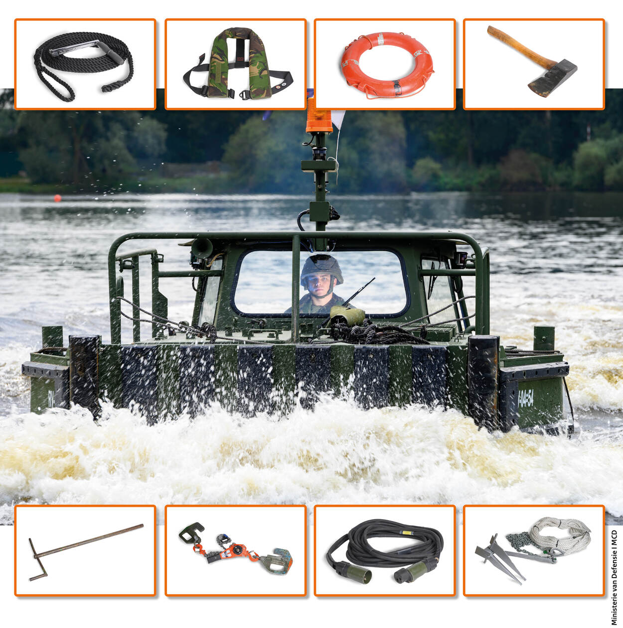 Iedereen heeft zijn eigen uitrusting. Enig idee wat collega’s met zich meezeulen? Welke ‘gereedschappen’ voor hen onmisbaar zijn? Maandelijks vertelt een landmachter over de essentiële benodigdheden waarmee hij zijn opdrachten uitvoert. Ditmaal soldaat-1 Henry, schipper boot brugbouw bij 105 Geniecompagnie Waterbouw.