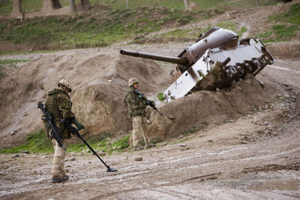 […] “In de Ops in Deh Rawod kwam het bericht binnen dat een patrouille van Franse militairen en ANA een IED had gevonden ten noorden van Takeyh, in de mond van de Tangivallei. Eenheid 1.6 werd getasked de IED veilig te stellen. Aangekomen bij de locatie bleek een gedeelte al zichtbaar, een blauwe wasteil. De ruiming vlotte zeer snel, met inachtneming van alle veiligheidsmaatregelen. Het bleek een bom te zijn die zou zijn afgegaan als er iemand op gestapt was. Een antipersoneelsmijn, slagsnoer en 25 liter aan zelfgemaakte explosieven.” […]