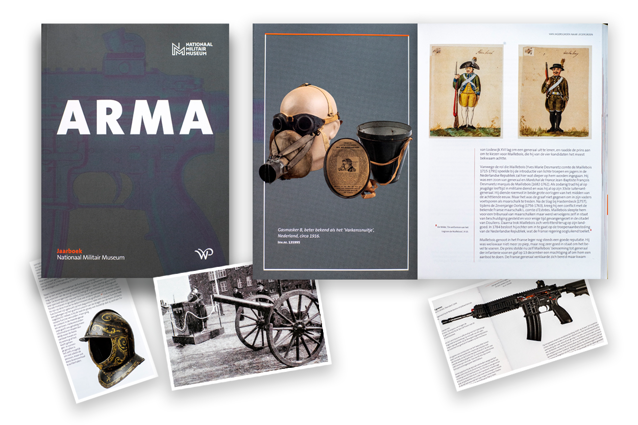 Arma (Spaans voor wapen, red.) is een aanrader voor iedereen met interesse in militaire geschiedenis en militaria, Nederlandse geschiedenis en kunst en cultuur. De vier musea van de Stichting Koninklijke Defensiemusea tonen een schat aan objecten en verhalen. Zoals zoveel musea hebben ze echter veel meer in huis dan ze kunnen tonen aan het publiek. Ze maken tentoonstellingen, doen onderzoek… en verwerven elk jaar weer nieuwe objecten. Die bijzondere kennis en informatie van hun collecties delen ze in Arma.