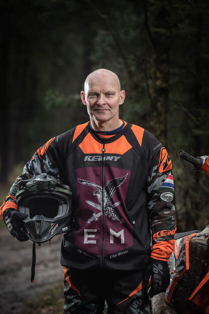 Dat beaamt luitenant-kolonel Peter Hageman, zelf gepassioneerd motorrijder, drijvende kracht achter deze motortrainingen en oprichter van het Luchtmobiel Enduro Team. “Rijd in je eigen tempo en laat je niet opjagen. Als je operationeel maar een keer per jaar op een motor zit, moet je die vaardigheid wel bijhouden. Op andere voertuigen doen we dat ook, dus waarom niet op motoren?”