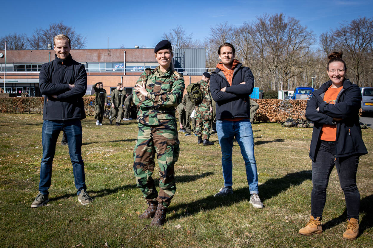 Projectleiders Defensie, van links naar rechts: Daan Bakker, LTZ-3 (SD) Marjolein Vleugel, Stijn Fijneman. Zij werken samen met hun sociale partner TijdVoorActie. Hier is de projectleider Jessica Bakker.