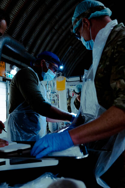 Het special operations surgical team in actie in een hangar op Vliegbasis Gilze-Rijen.