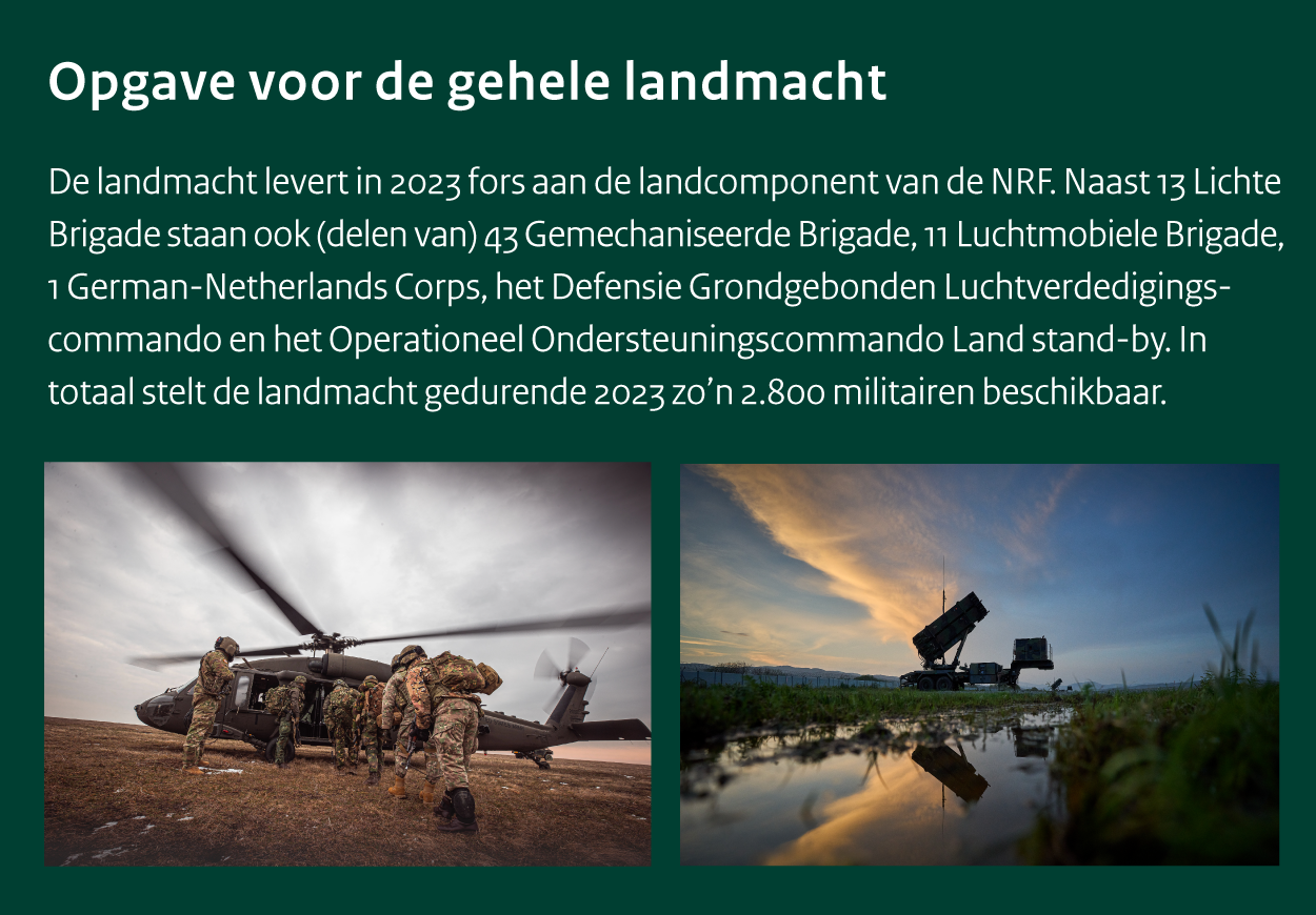 Bijna drieduizend landmachters staan dit jaar gereed voor de Very High Readiness Joint Task Force (VJTF) van de NAVO. Duizend van hen werken bij 13 Lichte Brigade. Tijdens Intense Fuselier oefenden zij een alarmering en daaropvolgende inzet, die gezien de huidige spanning op het Europese continent niet ondenkbaar is.