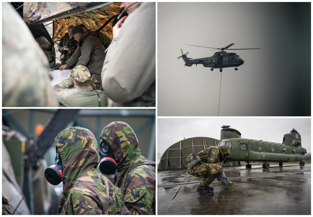In een grootschalig conflict levert een helikopter close air support. De vijand zet een middel voor chemische oorlogsvoering in, waardoor de CBRN-verdedigingseenheid van 11 Pantsergeniebataljon in actie moet komen. De CBRN-verkenners gaan aan de slag om forensische informatie te verzamelen, zodat er voor een later stadium voldoende bewijs is bij eventuele juridische processen. Nadat deze monsters zijn genomen, komen de CBRN-ontsmetters in actie om de helikopter zo snel mogelijk weer operationeel te krijgen.