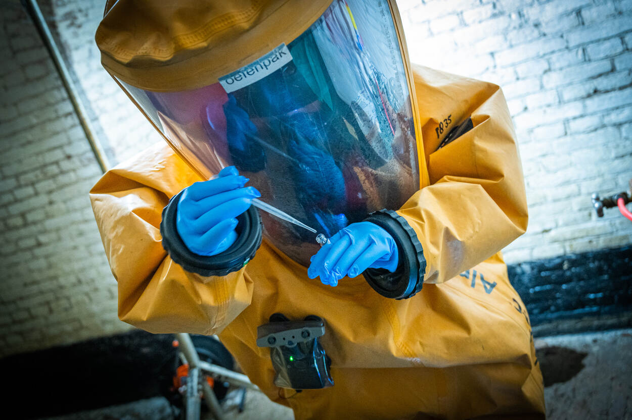 “Onze eenheid wordt vooral ingezet als er sprake is van intentionele inzet van gevaarlijke stoffen”, zegt commandant majoor Ivo. “Als dat niet zo is, zal eerder een brandweerman ter plaatse gaan. Bijvoorbeeld bij een chemisch incident op een industrieterrein.”