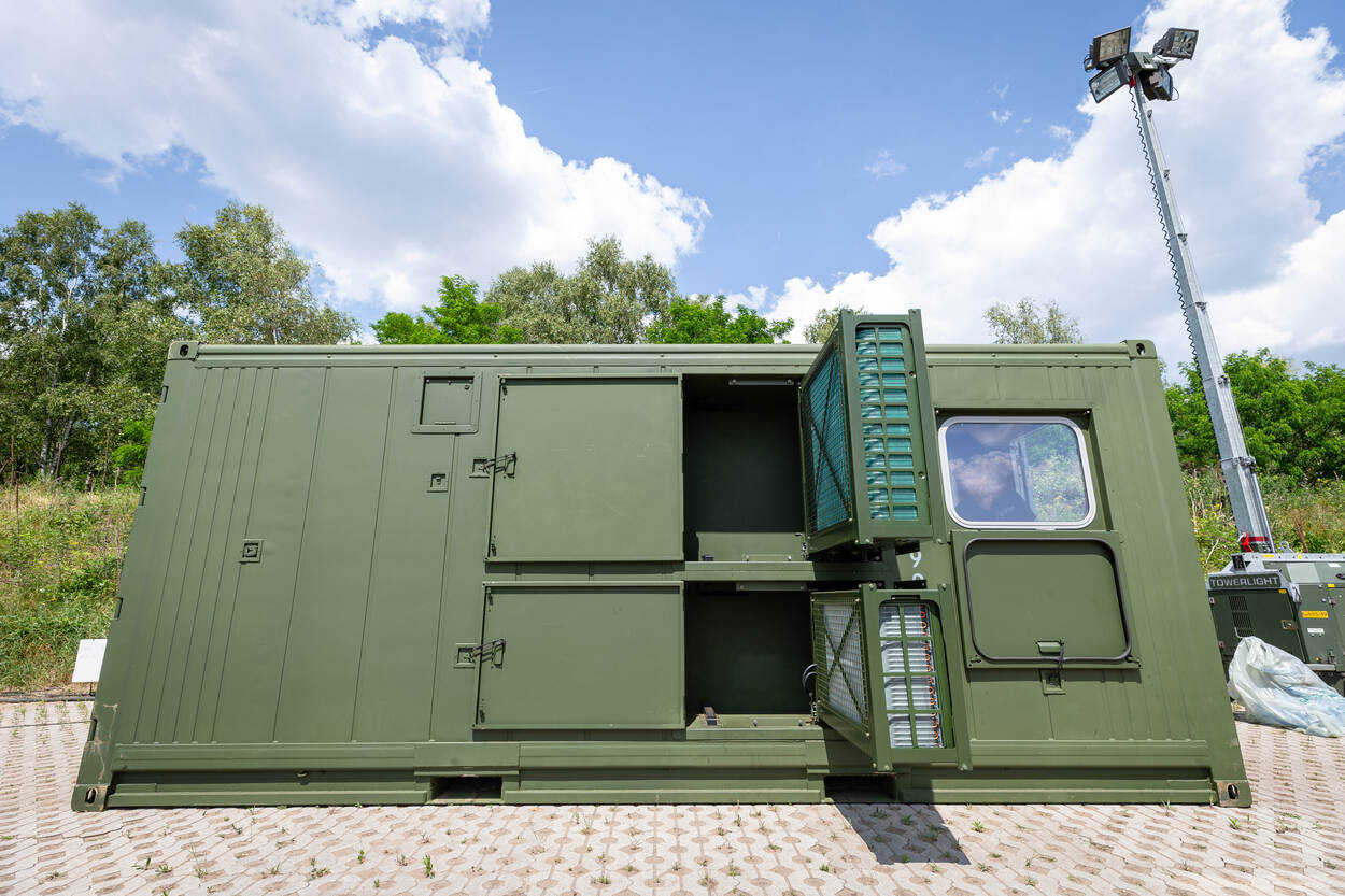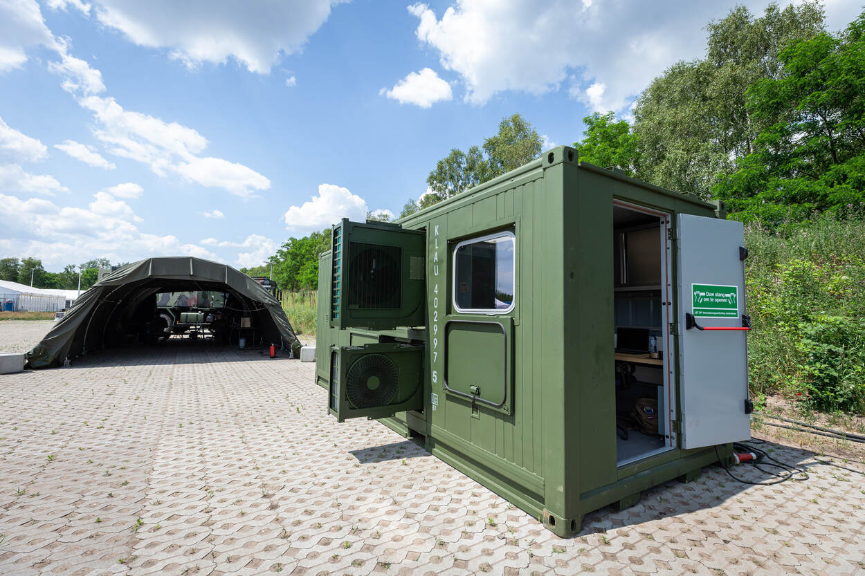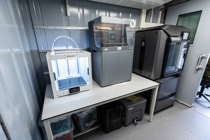 De groene AM-container bestaat uit twee ruimten. De ene zijde is het werkgedeelte, waar twee mensen kunnen tekenen, ontwerpen en overleggen. Aan de andere zijde prijkt de printruimte: hier kan de eenheid, afhankelijk van de missie of oefening, de gewenste printer installeren en gebruiken. De ruimten voldoen aan alle eisen die 3D-printen vereist: “De luchtvochtigheid is optimaal en de temperatuur is constant te controleren. Zelfs in de heetste gebieden is het in de container goed uit te houden”, aldus Fokkink.