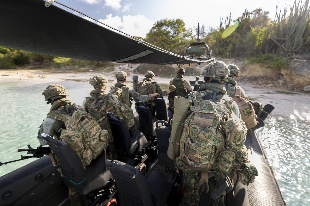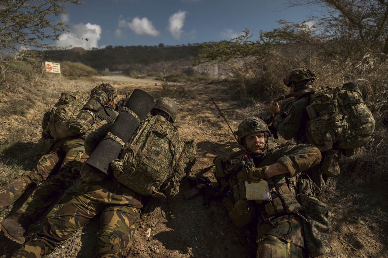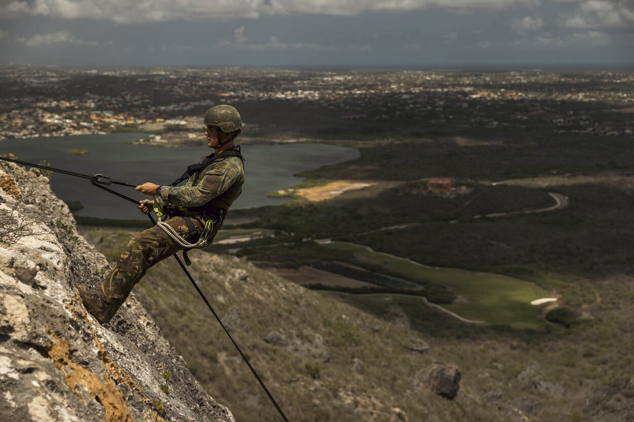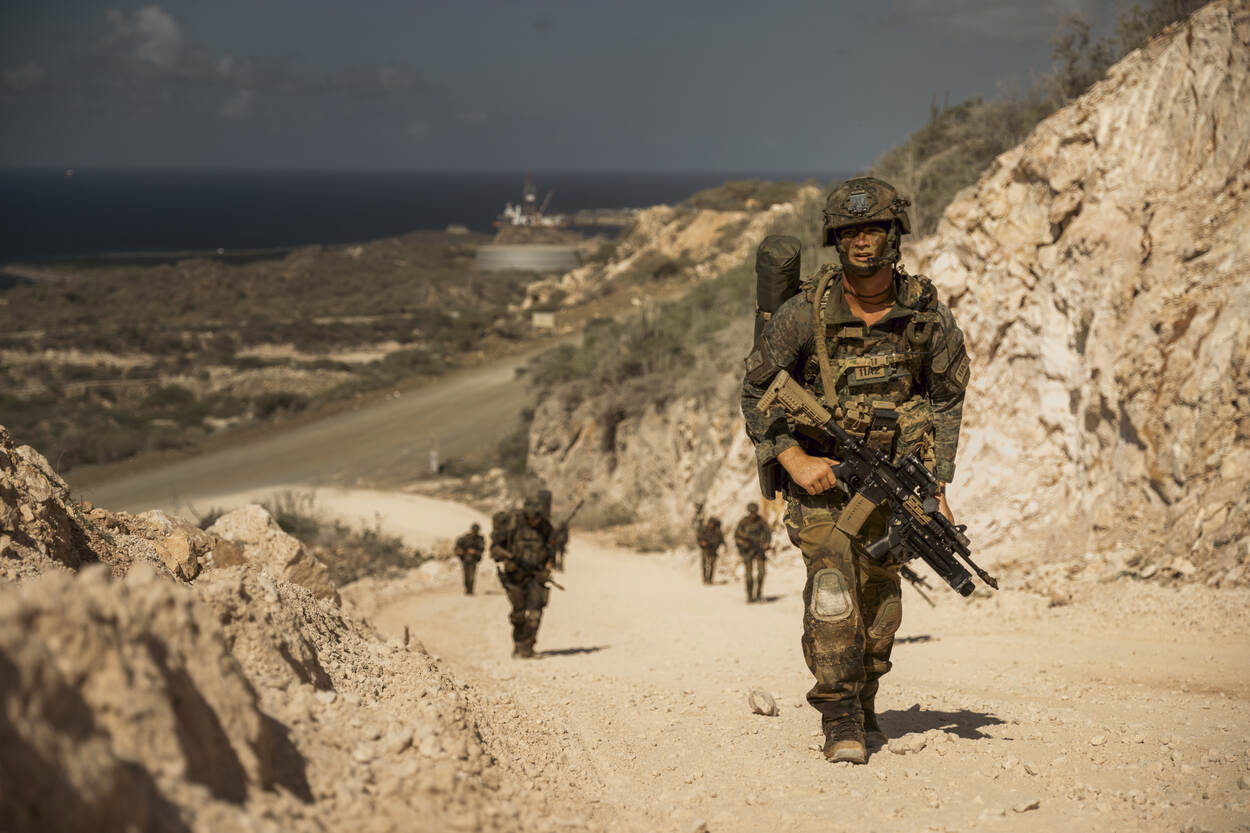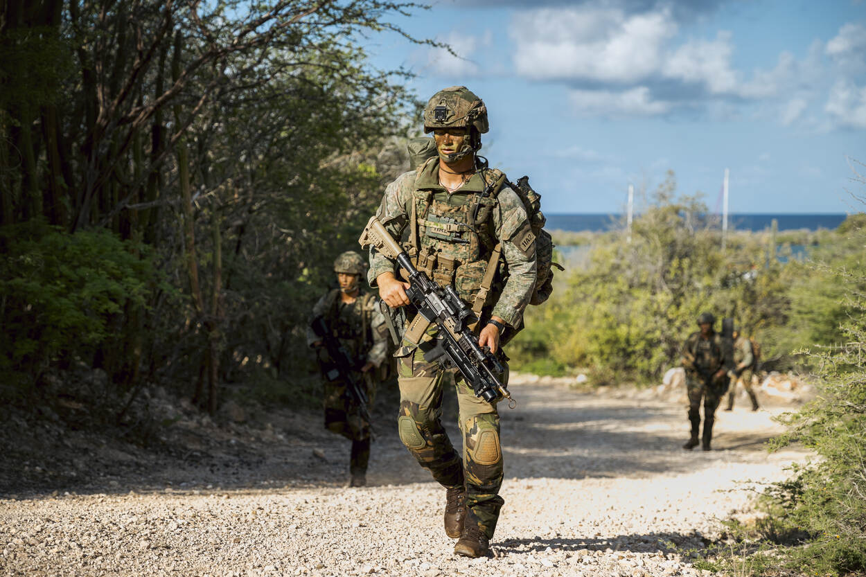 “Wij hebben ’t geluk gehad deze roteerbeurt ook op Bonaire en Aruba te kunnen oefenen”, vertelt pelotonscommandant luitenant Gijsbert Hoek. “Dat zijn toch net weer andere omstandigheden. Ook brachten wij de eilanden in kaart om, indien noodzakelijk, op de juiste wijze noodhulp te kunnen verlenen.”