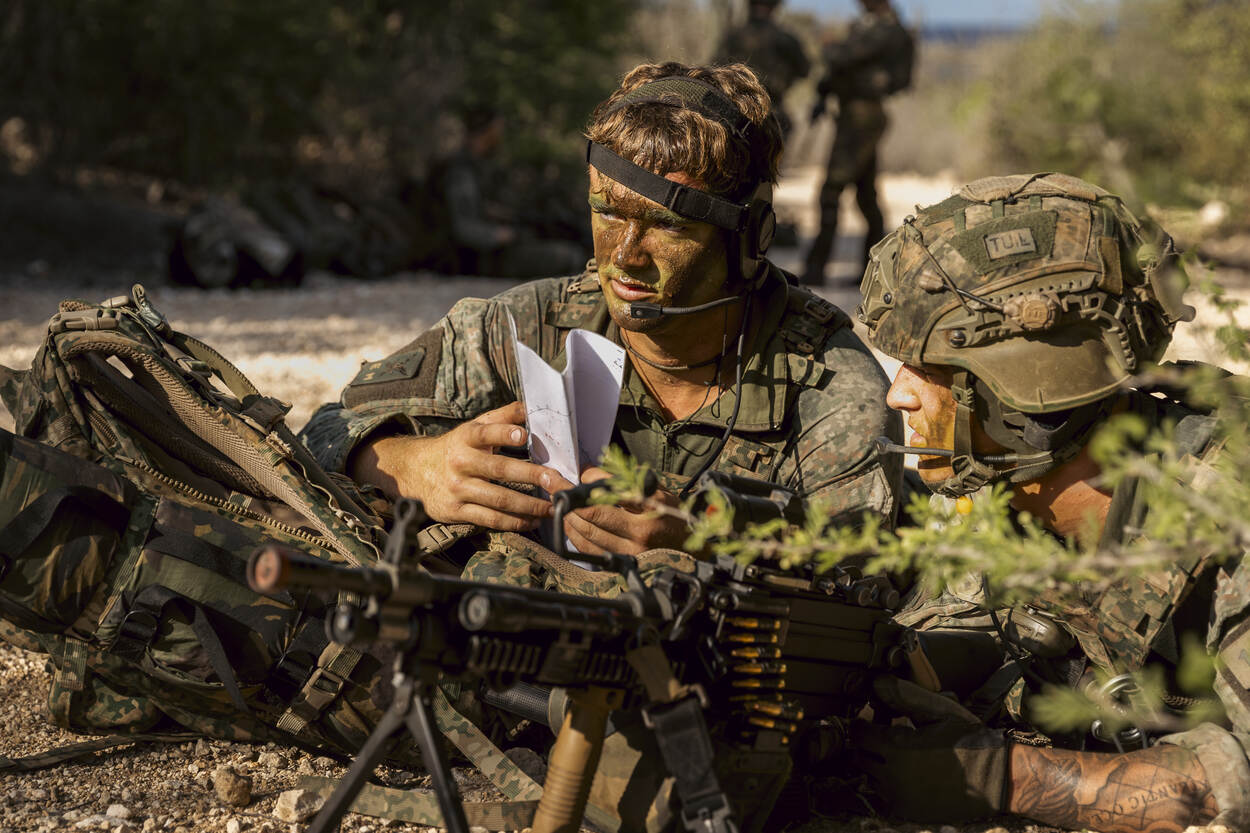Die eerste 2 weken staan vooral in het teken van niveau 1 (enkele man of vrouw) en 2 (de groep). “Samenwerken binnen de groep en daarmee acties uit kunnen voeren zoals groepsaanvallen, patrouilles en het vechten in verstedelijkt gebied”, legt Hoek uit. “Dan wordt het al wat complexer voor het individu omdat je met 8 man samen een opdracht uitvoert.”