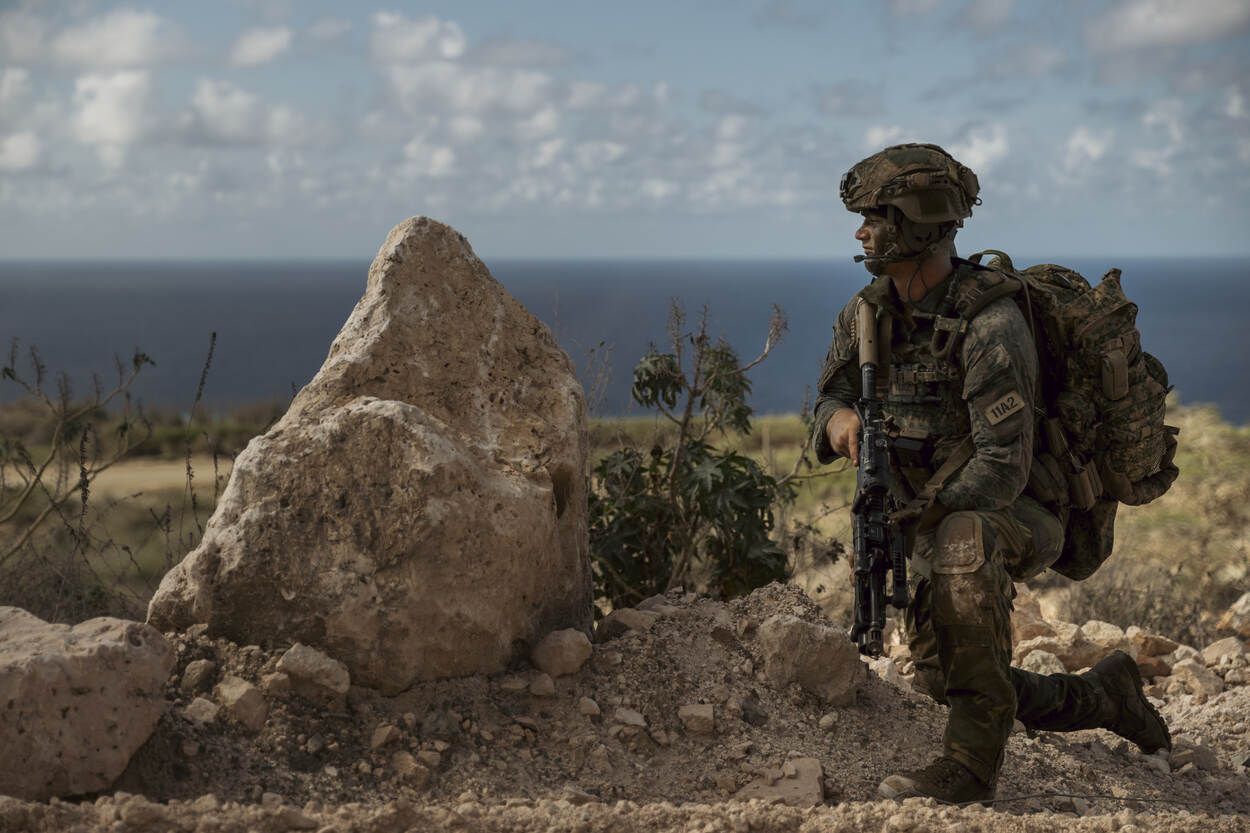 Eenmaal geacclimatiseerd gaat de eenheid aan de slag met oefeningen. Op het oefenterrein Wakawa, op het noordwesten van het eiland, werd getraind in het nog altijd nieuwe klimaat, op een nieuw terrein. “Ook dat is anders dan de bossen die we in Nederland gewend zijn”, vertelt Hoek. “Al die enorme cactus-begroeiingen die je hier hebt; daar kom je niet doorheen. Het zijn geen bosjes waar je even over- of doorheen stapt. Daar moet je gewoon omheen. Je bent wat dat betreft hier meer gebonden aan wegen en paden en dat doet dus iets met hoe je optreedt. Op kompas je koers varen, zoals in Nederland, dat gaat simpelweg niet hier.”