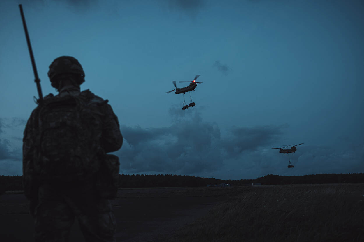 Om 12 Infanteriebataljon te testen, moest de staf 4 air assaults plannen. Om de uitvoering daarvan zo realistisch mogelijk uit te beelden, maakte zij gebruik van vrijwel alle  brigade-eenheden; van verkenners tot geneeskundigen. Zo ook van een Nederlands/Duits PsyOps team, Amerikaanse Blackhawk en Chinook transporthelikopters evenals 2 Poolse Mi-24 gevechtsheli’s. Op de foto zie je een Amerikaanse Blackhawk bezig met herbevoorraden.