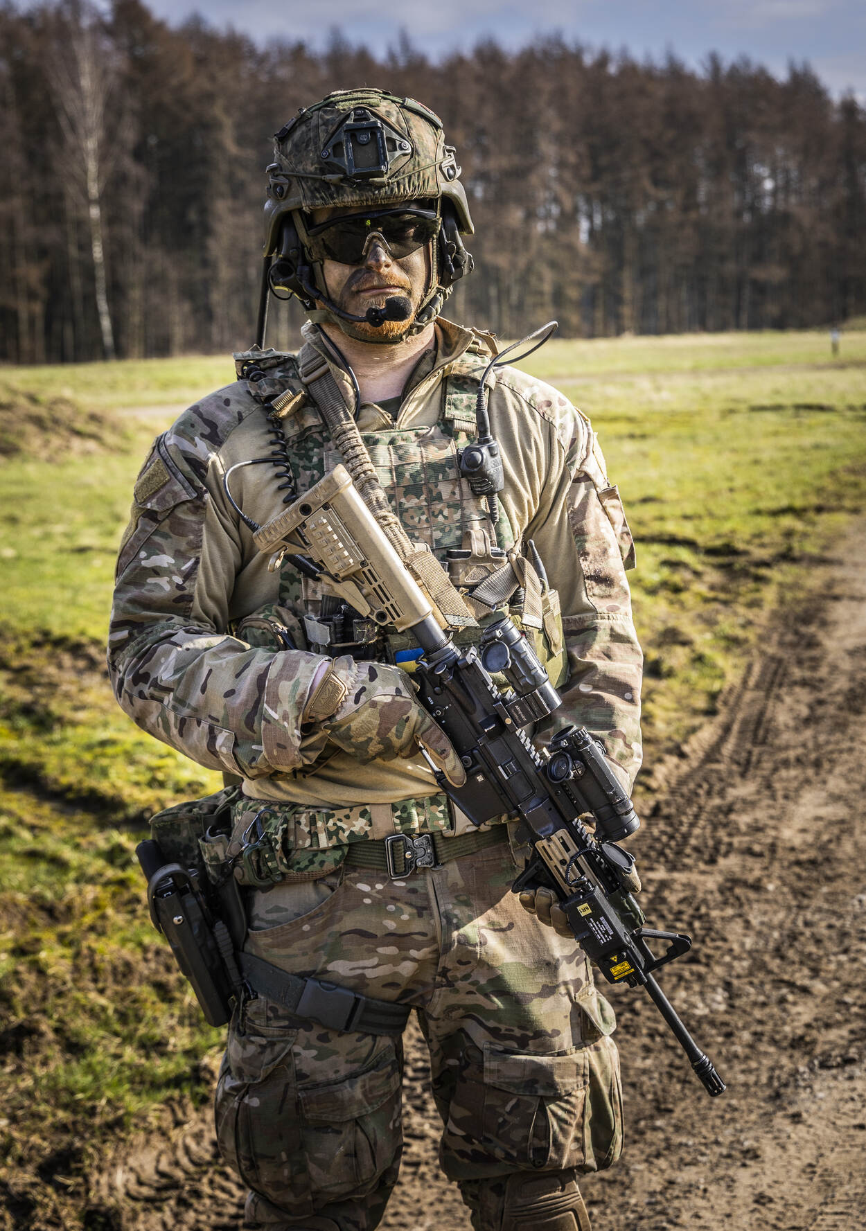Terwijl je met je eenheid onder vijandelijk vuur ligt, klinkt in de verte het dreigende gezoem van een naderende drone. Wie schakelt het onbemande toestel uit, wat betekent dit voor je tactische manoeuvres en hoe schiet je überhaupt zo’n kleine stip uit de lucht? Dit ‘nieuwe oorlogsvoeren’ werd begin maart geoefend op de schietbanen van het Duitse Bergen-Hohne.
