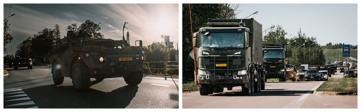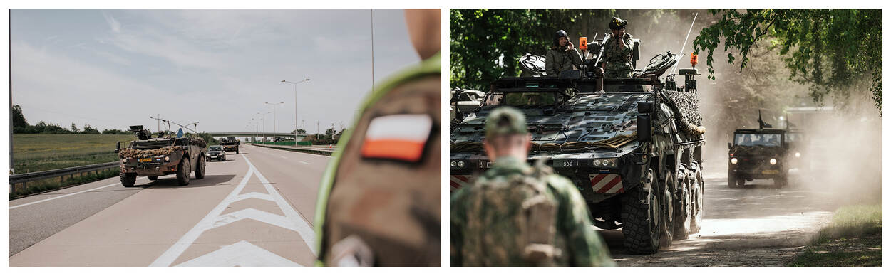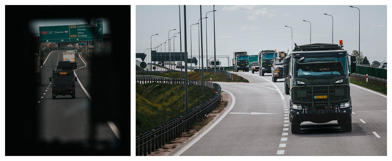 Vrijdag 9 mei vertrok vanuit het Duitse Oberlausitz het eerste, 5 colonnes tellende konvooi. In deze ‘pakketten’ zaten onder meer Boxers, Fenneks, Bushmasters, MB’s en Scania’s. De dag erna vertrok in Duitsland een gelijksoortig tweede konvooi. Dit terwijl het eerste de route vanuit Polen vervolgde, langs Warschau naar de volgende slaapplek. De derde etappe voerde door de Suwałki-corridor. Dit grensgebied tussen Litouwen en Polen vormt een strook tussen het Russische Kaliningrad en Wit-Rusland.